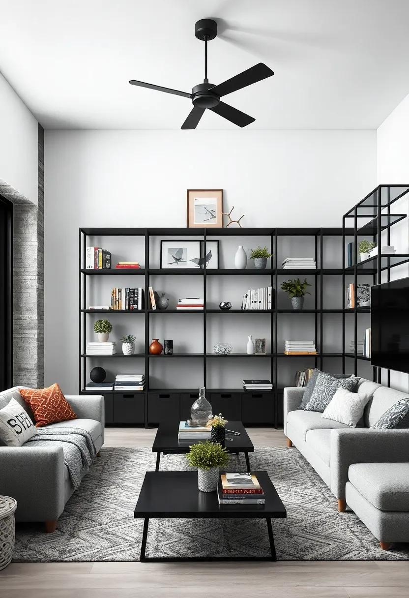 To maximize the effectiveness of your shelving,think about integrating a few key elements that can tie the room’s style together. Use baskets in natural or muted tones to hold smaller items, keeping the visual clutter to a minimum. Pair the metal shelves with other monochrome décor elements, such as a rug or wall art, to create a harmonious appearance. Here are some essentials to consider when styling your black metal shelving:
