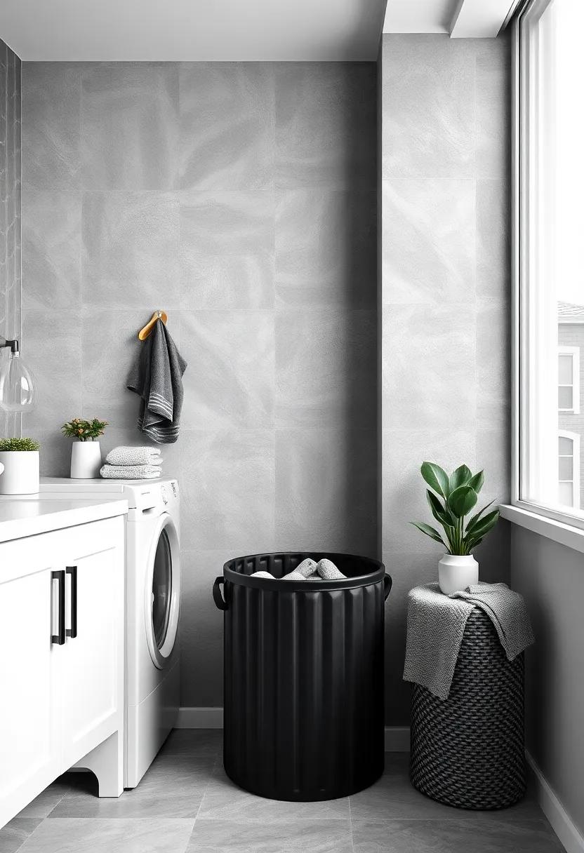 Chic Laundry Hampers: Choose a sophisticated black or gray laundry hamper that seamlessly blends into the room while keeping it tidy