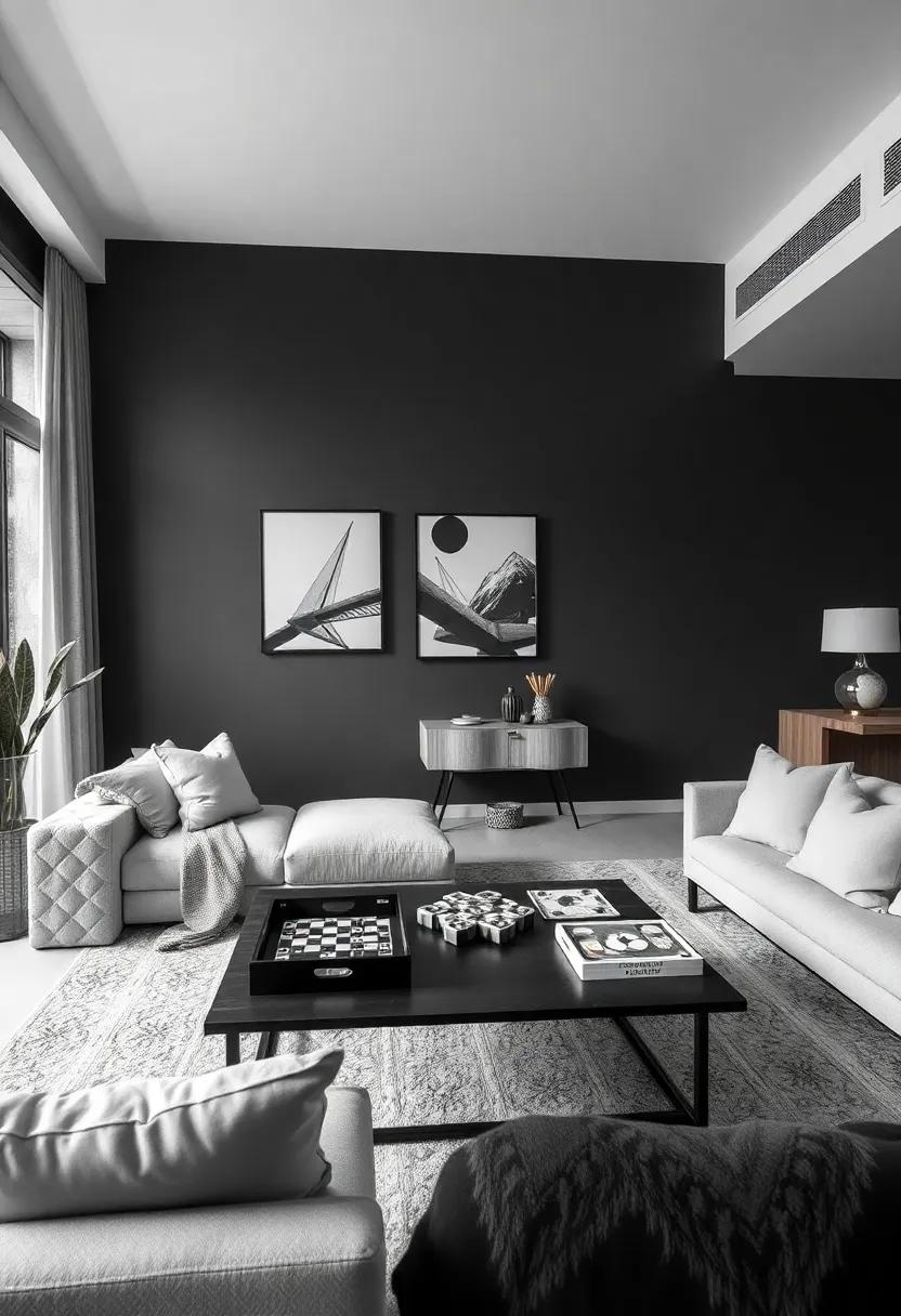 Cool Table Games: Display monochrome-themed board games on a coffee table for entertainment and decor that complements the color scheme