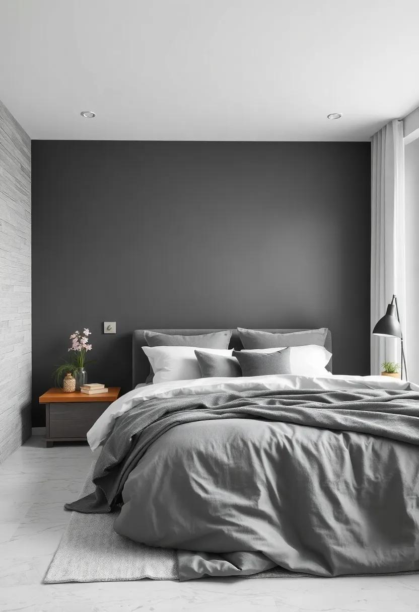 To maintain a cohesive look, choose a consistent color palette focusing on various shades of gray, from charcoal to light ash, alongside crisp white accents. Incorporate different material finishes such as a shiny satin pillow or a soft fleece blanket. You could also add a decorative bed skirt in a subtle geometric pattern to ground your look. With just the right balance of comfort and style, your bed can become both a restful retreat and a stunning centerpiece in the room!