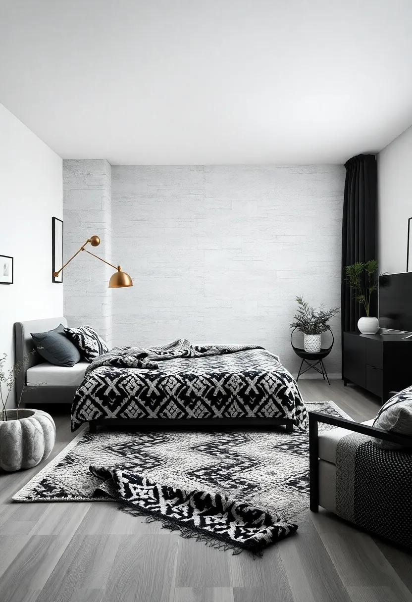Monochrome Themed Throw Blanket: Add a soft,patterned throw blanket in black-and-white hues to your bed or chair for extra coziness and style
