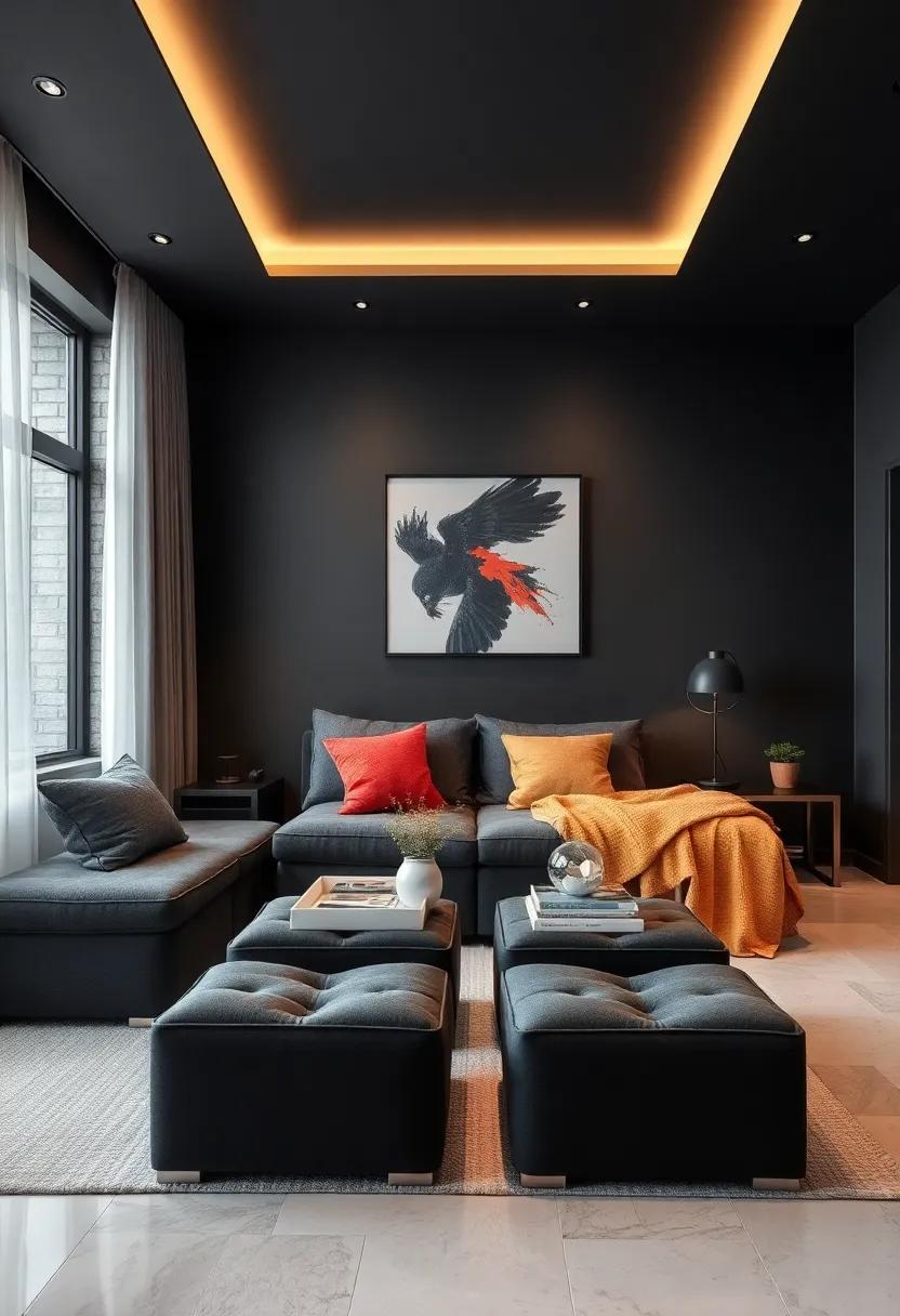- Contrast Accents: Pair dark ottomans with light-colored pillows for visual interest.