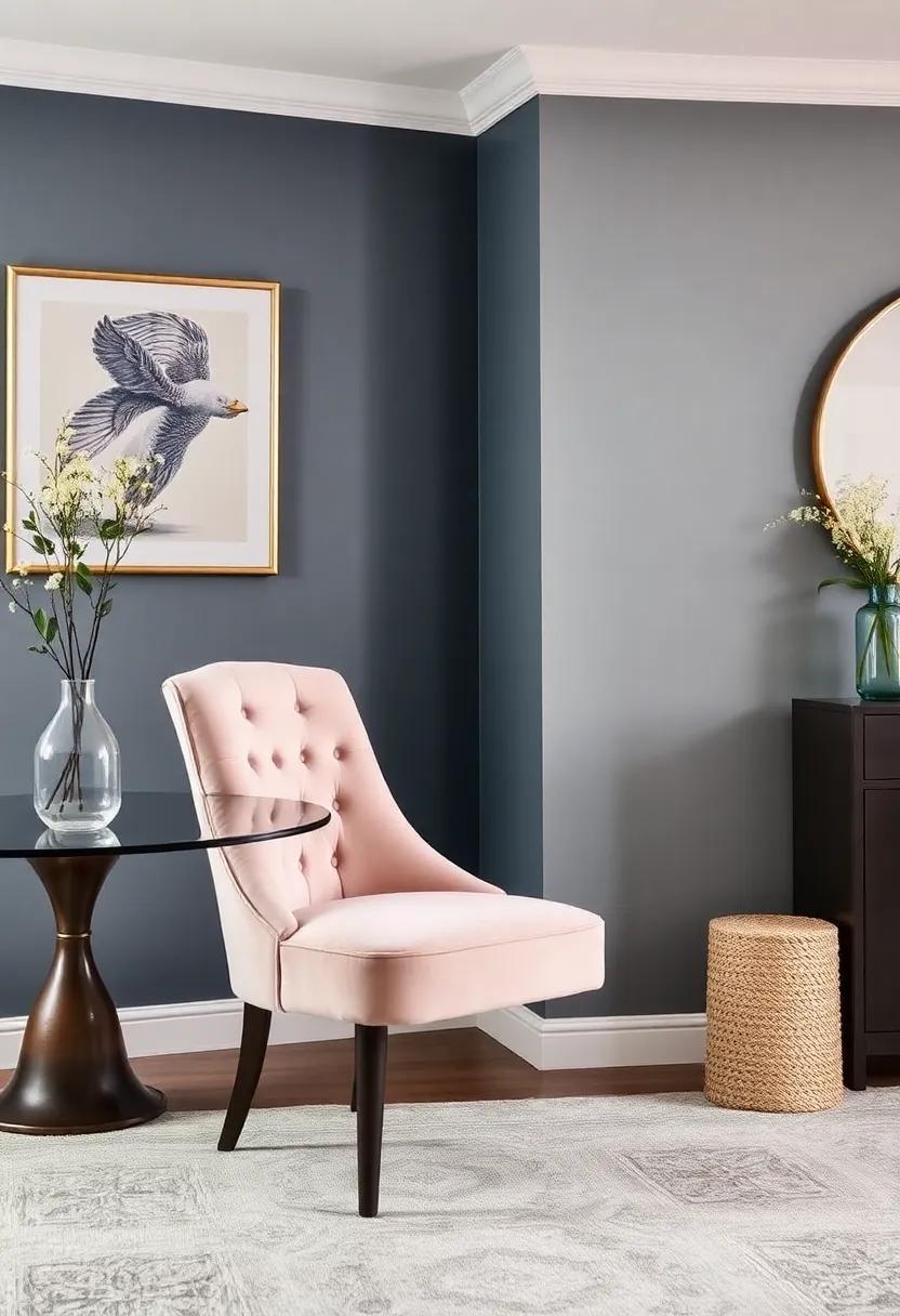 Whimsical Velvet: This playful blush velvet chair offers a soft, inviting seat, making it ideal for lively conversations during dinner gatherings