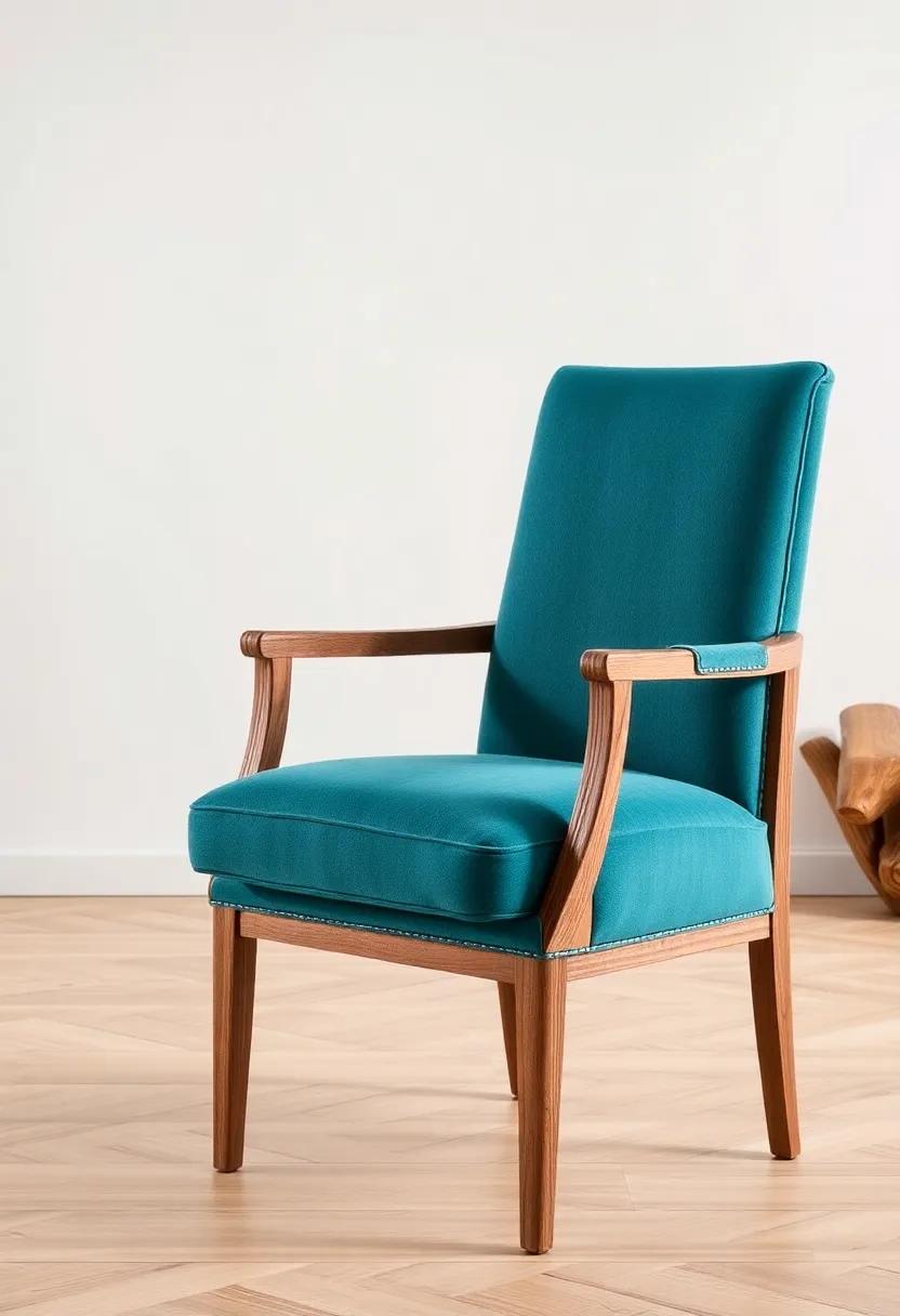 Velvet and Wood Fusion: A rustic wooden frame beautifully contrasts against plush teal velvet, marrying natural elements with luxurious comfort