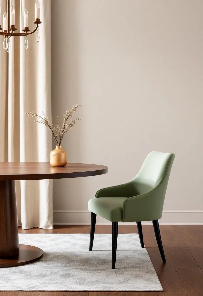 Serenity in Sage: this serene sage velvet chair offers a calming hue, providing a refreshing contrast against darker wood dining tables