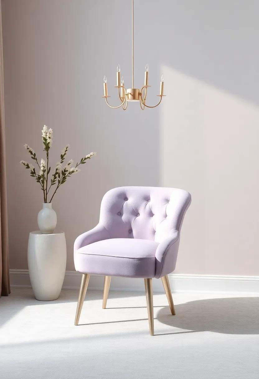 Vintage Vibes: A charming lavender velvet chair with vintage-inspired legs, ideal for adding a touch of nostalgia to modern interiors