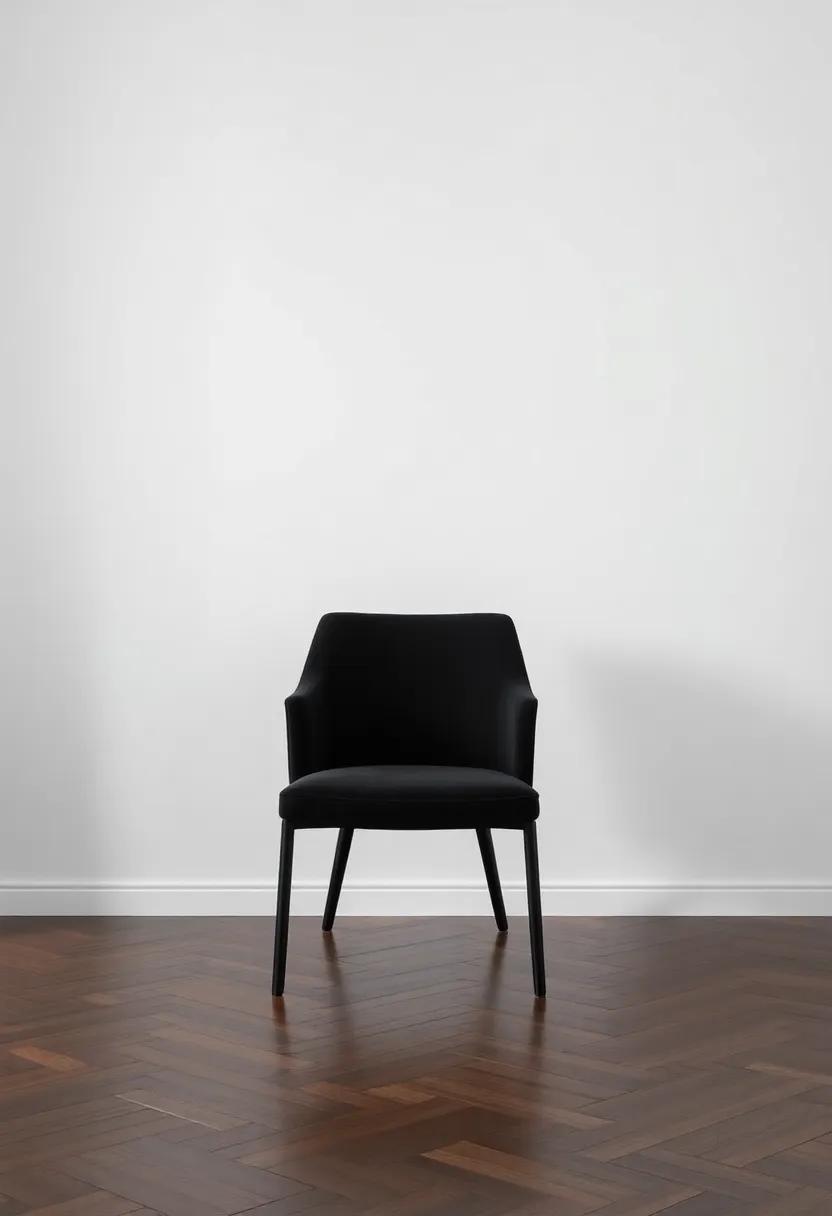Modern Minimalist: A sleek black velvet chair with streamlined design, perfect for minimalist spaces while retaining an air of luxury
