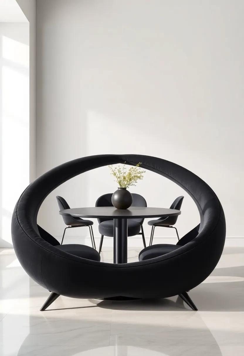 Infinity Design: This beautifully designed infinity-shaped chair in charcoal velvet adds both sophistication and intrigue to your dining space