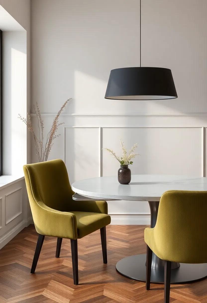 - Contrast Textures: Mix with upholstered chairs in different fabrics for a tactile experience.
