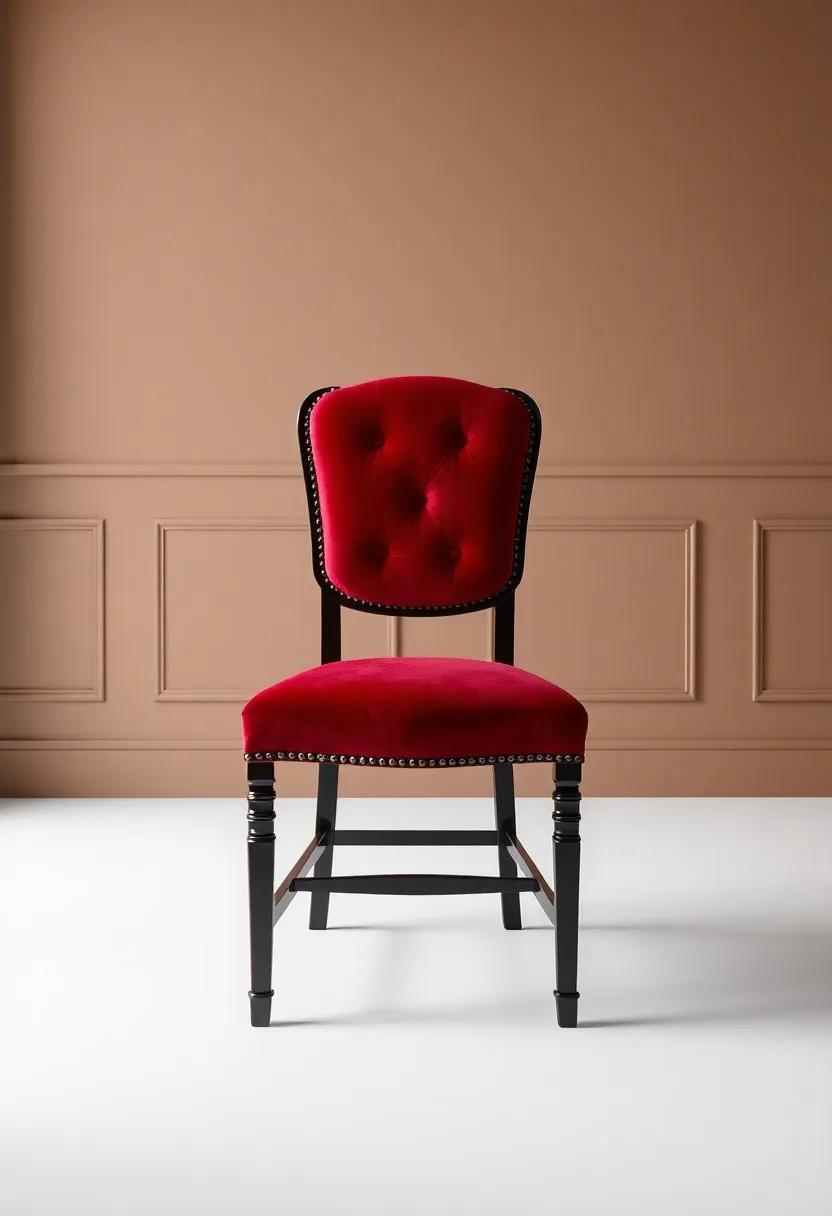 The deep red velvet chair, a quintessential representation of the Chippendale style, serves as a statement piece that conveys both elegance and warmth. Its rich, luxurious fabric invites guests to indulge in a dining experience that feels both refined and inviting. With its curved legs, intricate carvings, and luxurious upholstery, this chair not only enhances the aesthetic of your dining area but also adds a layer of comfort that encourages lingering over fine meals and spirited conversation. The deep red hue harmonizes effortlessly with neutral palettes,creating a striking contrast that captivates the eye.