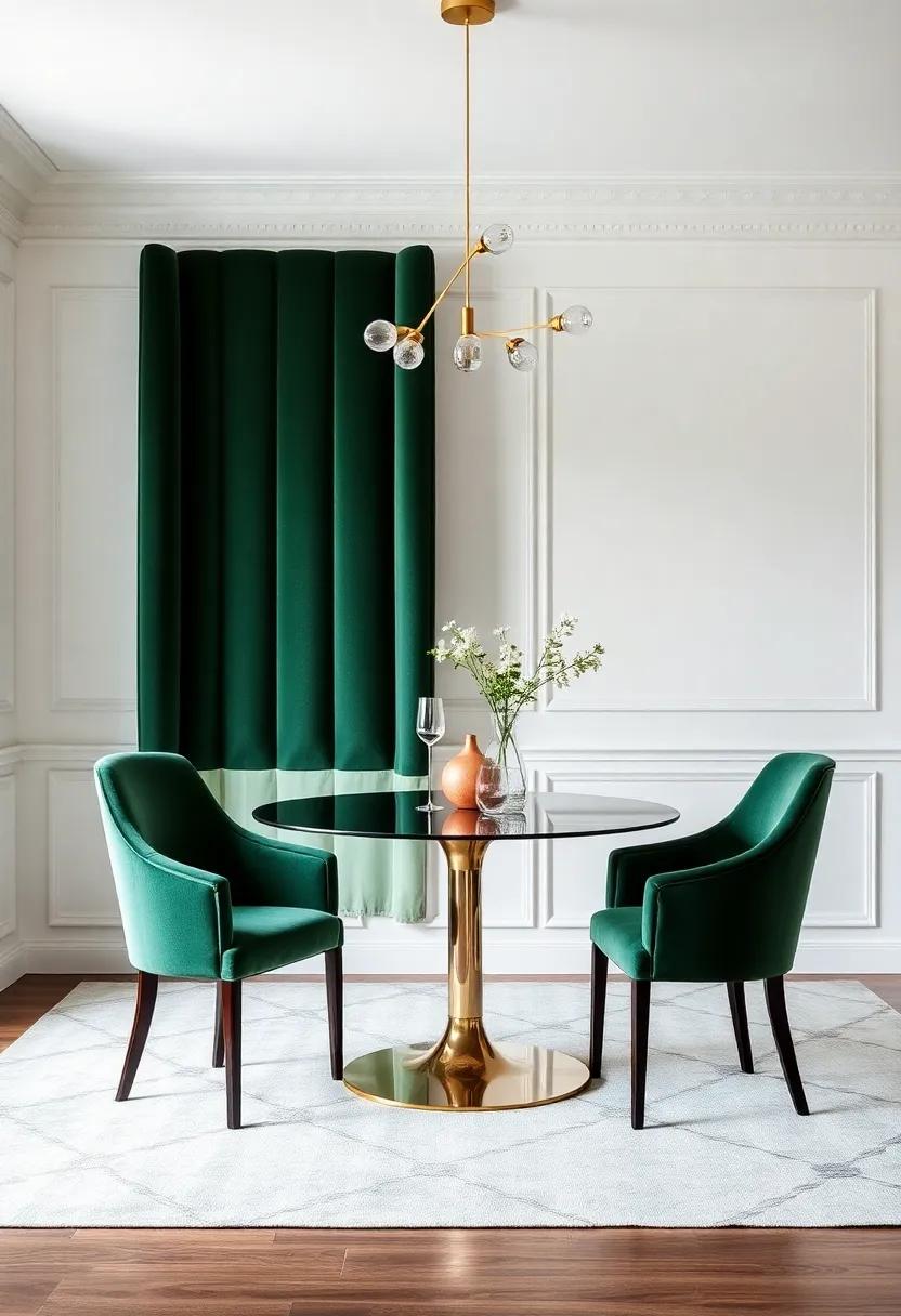 - Rich color Palette: the deep emerald tone harmonizes beautifully with gold or silver accents, enhancing the overall elegance of the dining room.