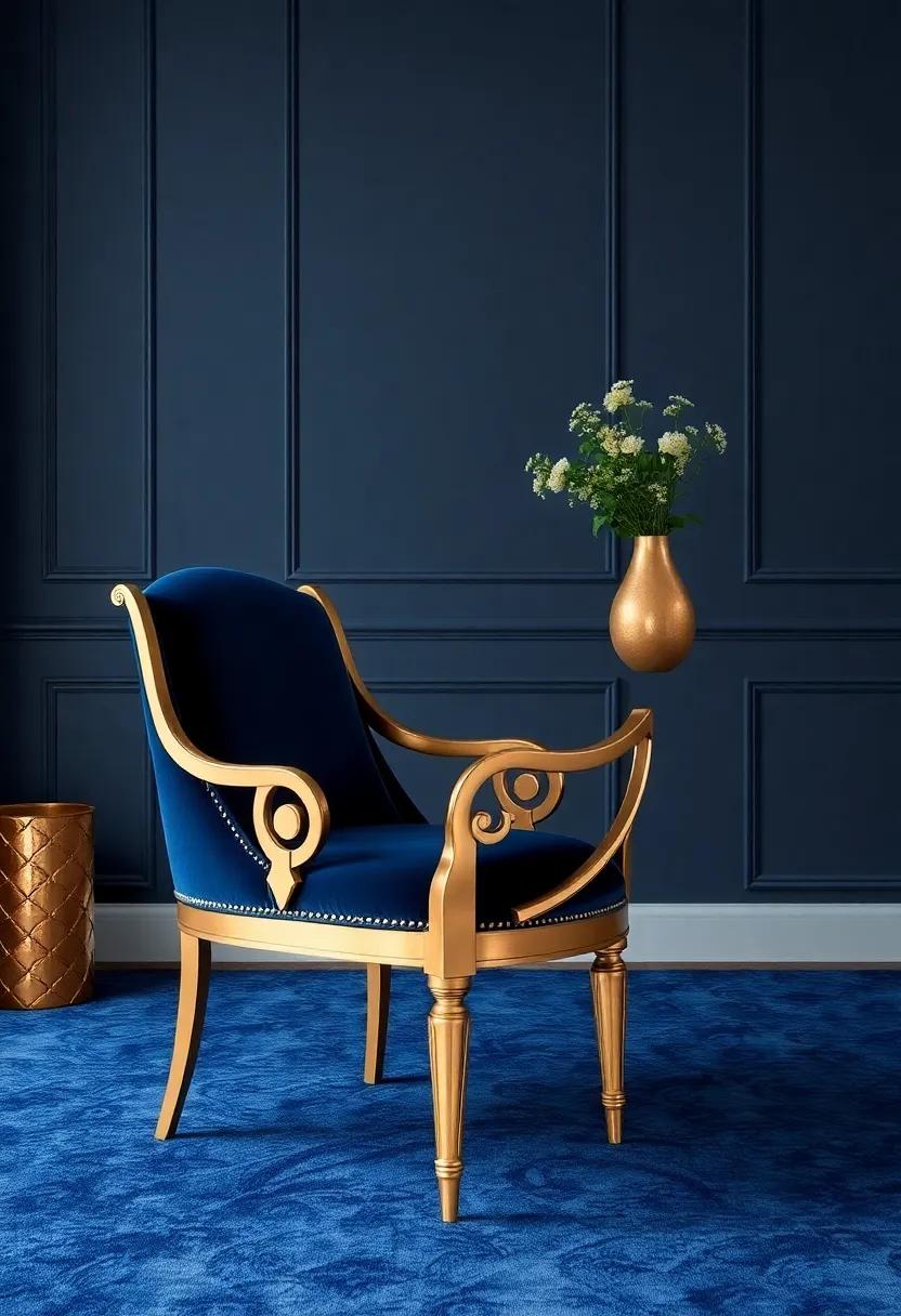 Gilded Grace: With stunning gold accents and plush navy velvet, this chair effortlessly combines glamour and comfort for an upscale dining experience
