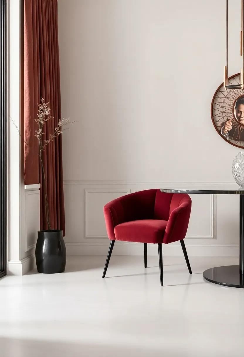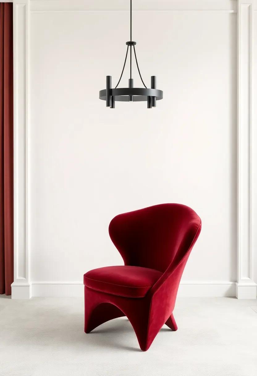 The Artistic Accent: A beautifully sculpted chair with an artistic flair, adorned in rich burgundy velvet, ideal for those who appreciate bold design statements