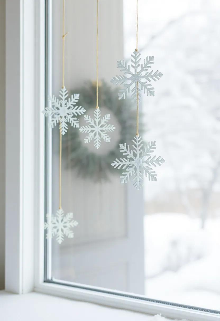 DIY Snowflake Window Clings: Use natural materials to create DIY snowflake decorations that stick to your kitchen windows, evoking the beauty of winter