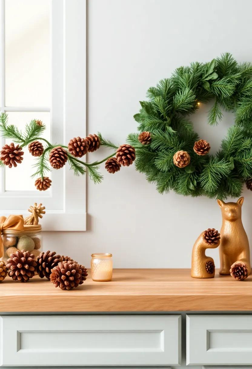 Pinecone Garland: Craft a simple pinecone garland to drape across shelves or windows, bringing nature’s beauty indoors for the season