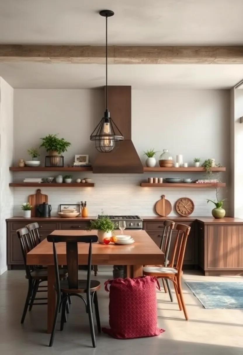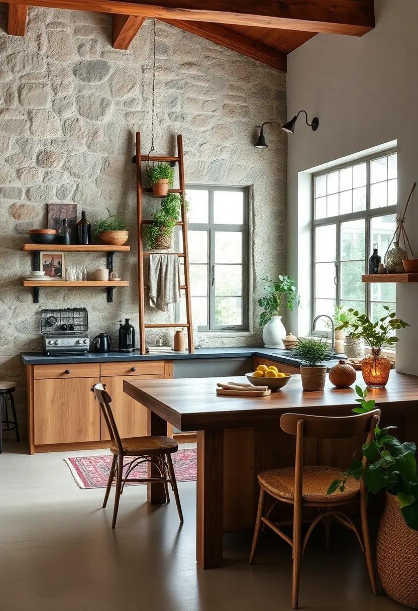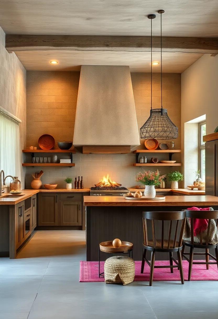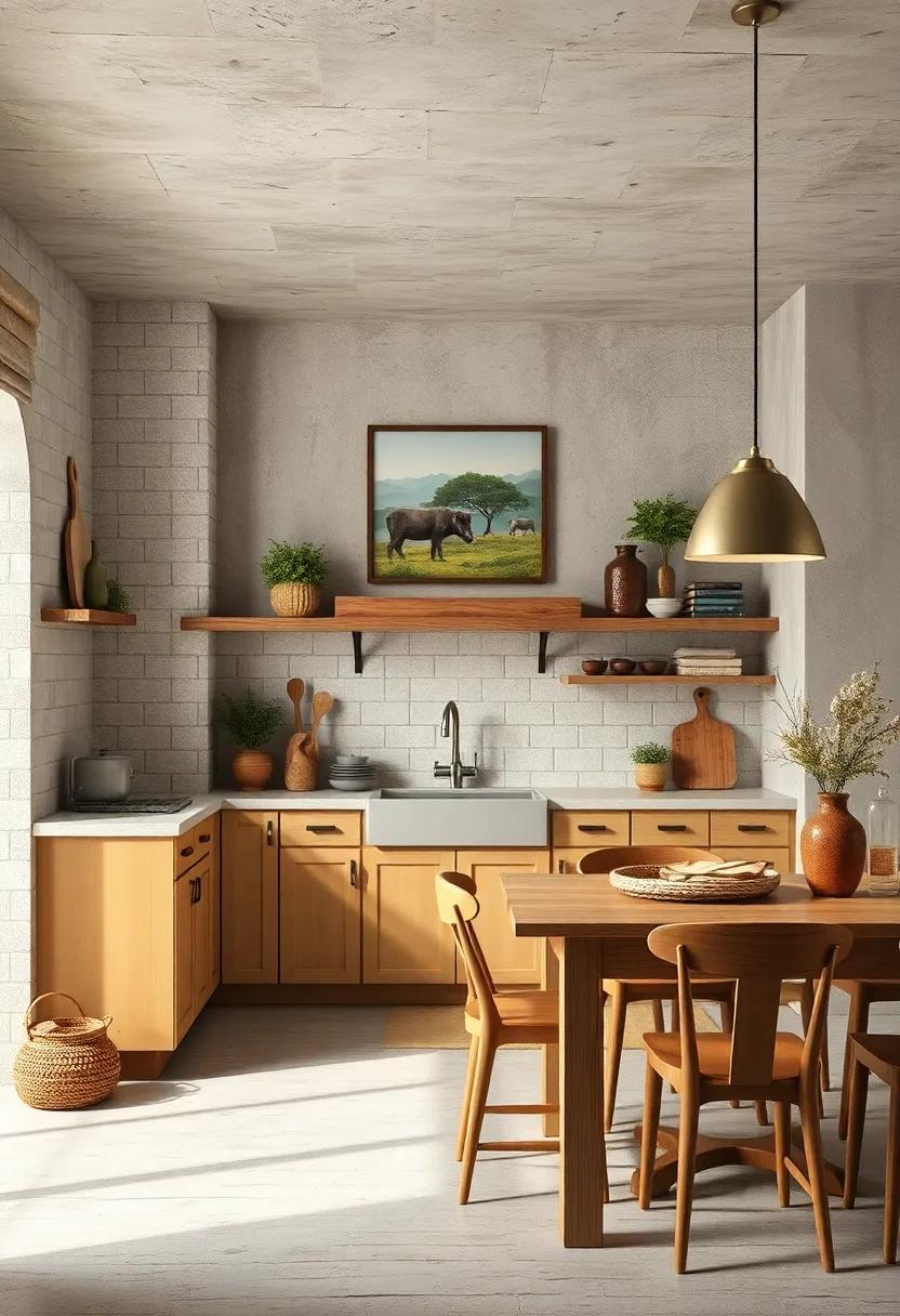 Consider using a palette of complementary colors to harmonize the rich textures of wood. Soft whites, earthy greens, and warm neutrals can accentuate the natural beauty of wooden elements without overpowering them. To further enhance the rustic vibe, incorporate handmade ceramic dishware or woven baskets filled with seasonal produce. You might also integrate the beauty of wood into your kitchen island or countertops, creating a centerpiece that draws the eye and invites guests to gather around. Here’s a simple overview of ways to incorporate wood:
