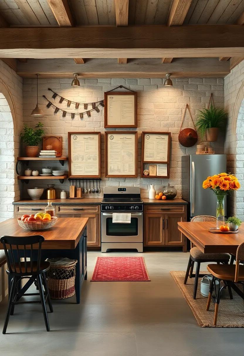 To truly make your rustic kitchen feel like home, consider incorporating personal touches that speak to your family’s history and values. Family photos displayed in charming frames can evoke memories and tales shared over meals. Opt for a mix of black-and-white photos and vibrant snapshots to create visual interest.Additionally, handmade crafts, whether they be ceramic mugs from a local potter or a quilted table runner created by a family member, can infuse warmth and personality into the space. These elements could also serve as conversation starters, inviting guests to engage with your home’s story.