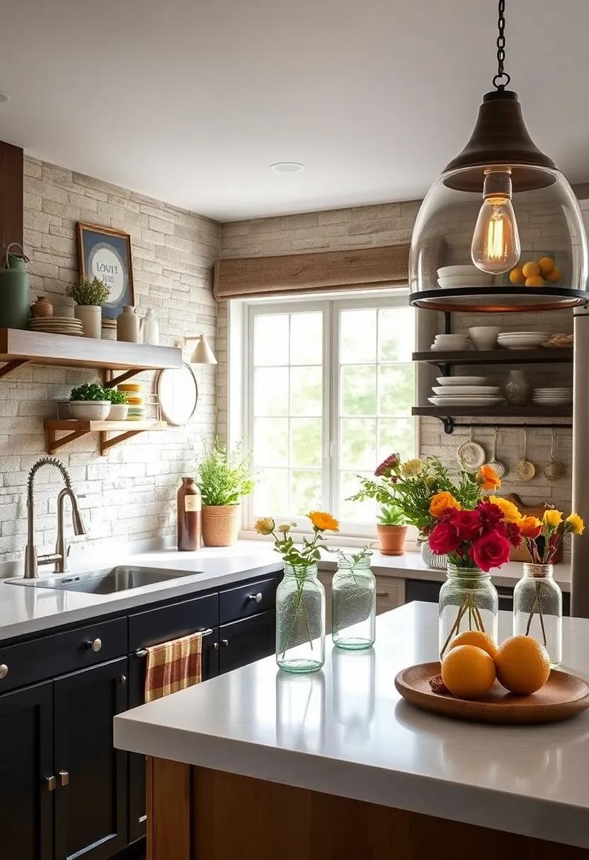 With the arrival of spring, it’s time to bring in fresh flowers and bright colors that breathe life into your space. Equip your kitchen with vibrant blooms like tulips, daisies, or sunflowers arranged in mason jars or rustic ceramic vases.Layer textures by combining floral arrangements with touches of greenery or wreaths made from local wildflowers. To add a personal touch, consider crafting a decorative herb garden in repurposed tin cans or wooden planters on your windowsill. This not only enhances the aesthetic but also offers fresh ingredients for your cooking, showcasing the perfect marriage of functionality and rustic beauty.
