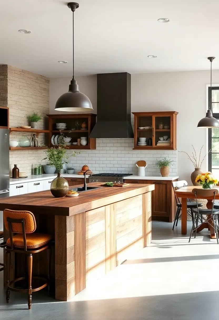 To enhance its rustic charm,personalize your island with decorative elements that reflect your style. Fill the space beneath with woven baskets for extra storage, or adorn the countertop with potted herbs for an organic touch. Lighting plays a crucial role, so consider hanging vintage pendant lights above the island to cast a warm glow.This reclaimed wood island not only serves as a functional workspace but also as a stunning visual element that harmonizes with your country home’s decor.