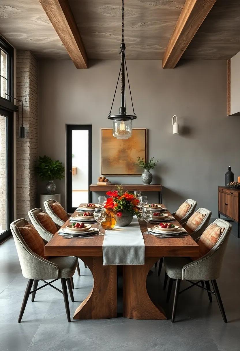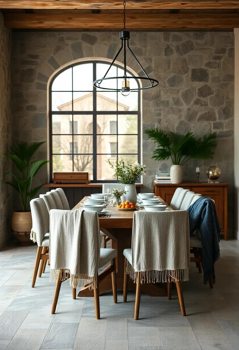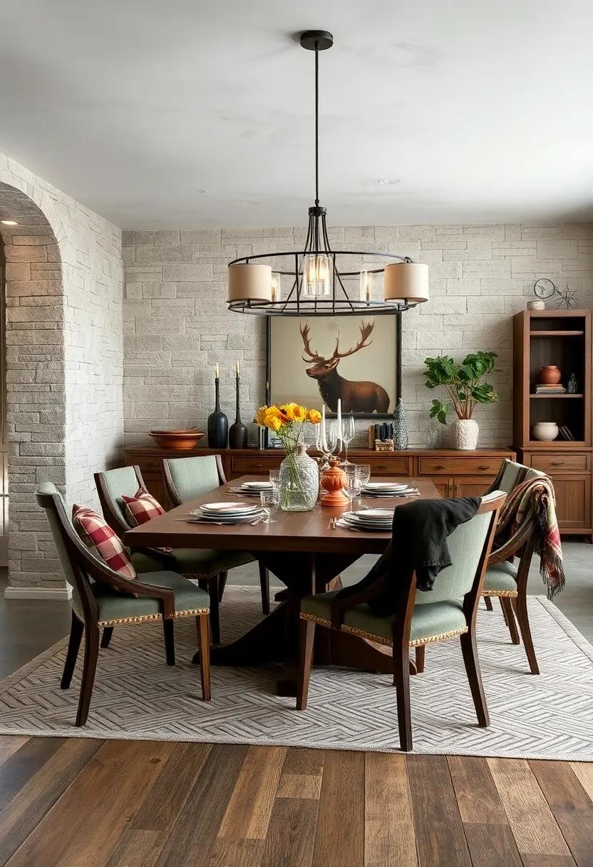 This refined approach to patterns not only enhances the visual interest but also fosters a welcoming environment perfect for gatherings. Keep in mind that balancing these elements with solid textures—like a chunky knit or distressed leather—can further anchor your rustic dining room’s aesthetic.