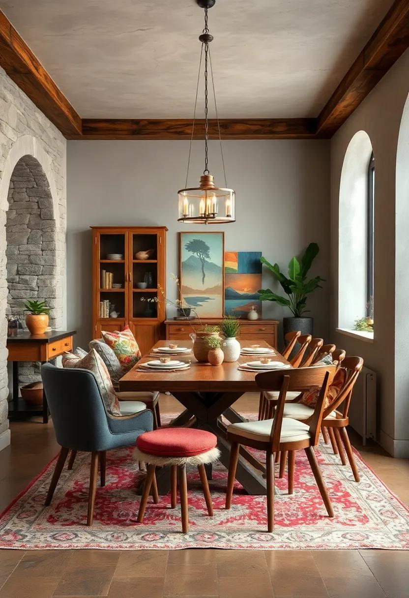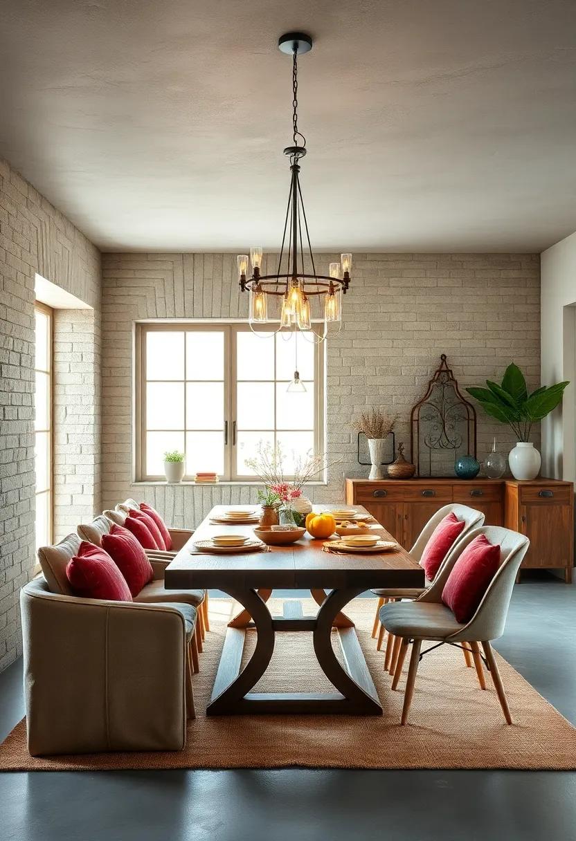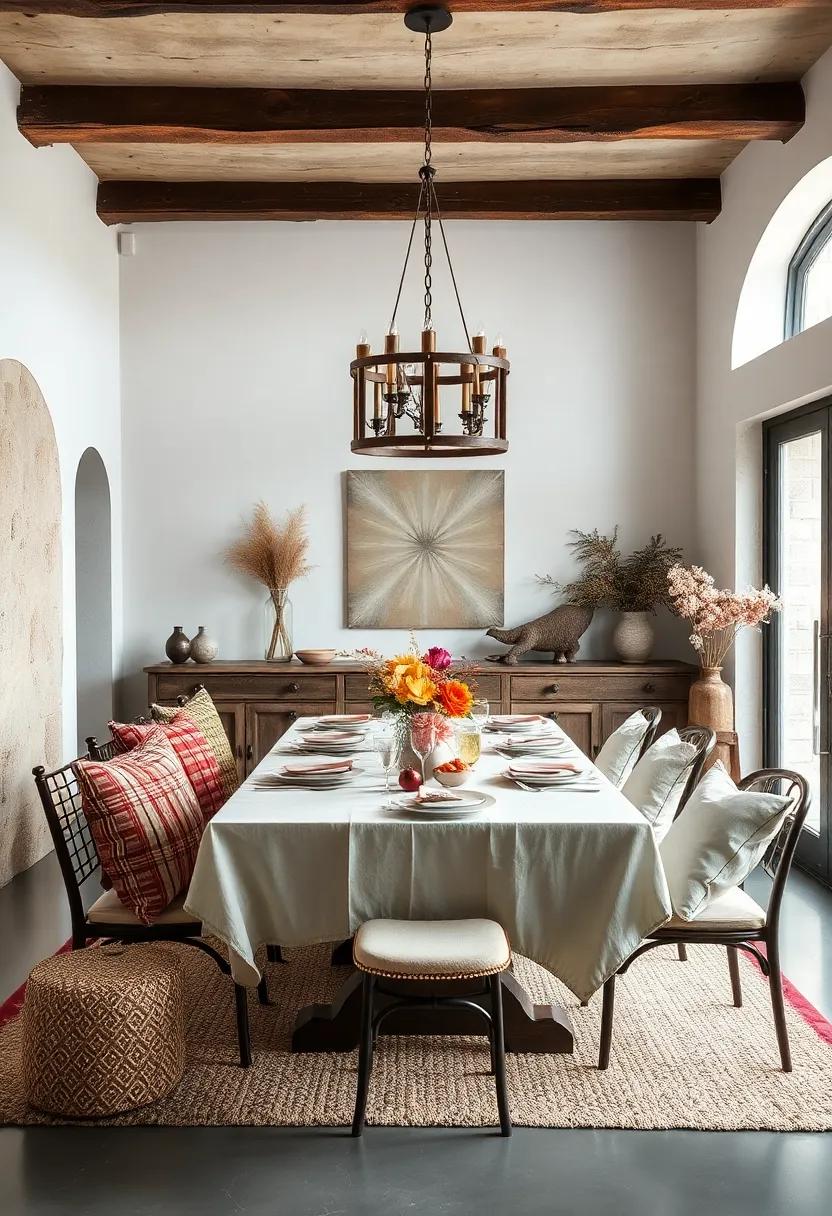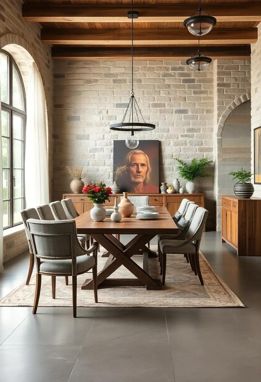 This refined approach to patterns not only enhances the visual interest but also fosters a welcoming environment perfect for gatherings. Keep in mind that balancing these elements with solid textures—like a chunky knit or distressed leather—can further anchor your rustic dining room’s aesthetic.