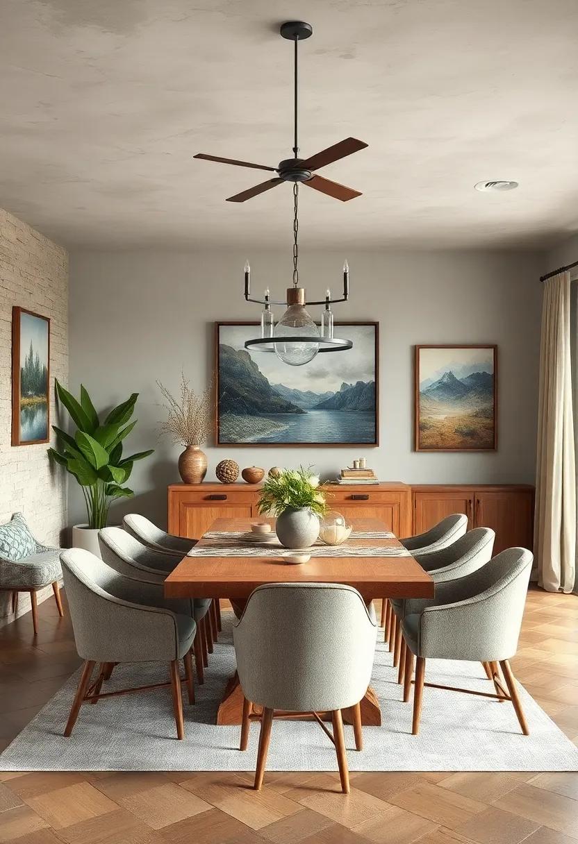 To elevate your rustic dining room, consider infusing the space with local art and handmade pieces that celebrate the beauty of your surroundings. Incorporating artworks that reflect landscapes, nature-insired designs, or even abstract interpretations of rural life can create a strong sense of connection to the environment. As a notable example, you might display a series of framed prints featuring local wildlife, or a large canvas depicting the rolling hills of your favourite hiking spot. Not only does this beautify your space, but it also fosters a narrative that resonates with you and your guests.