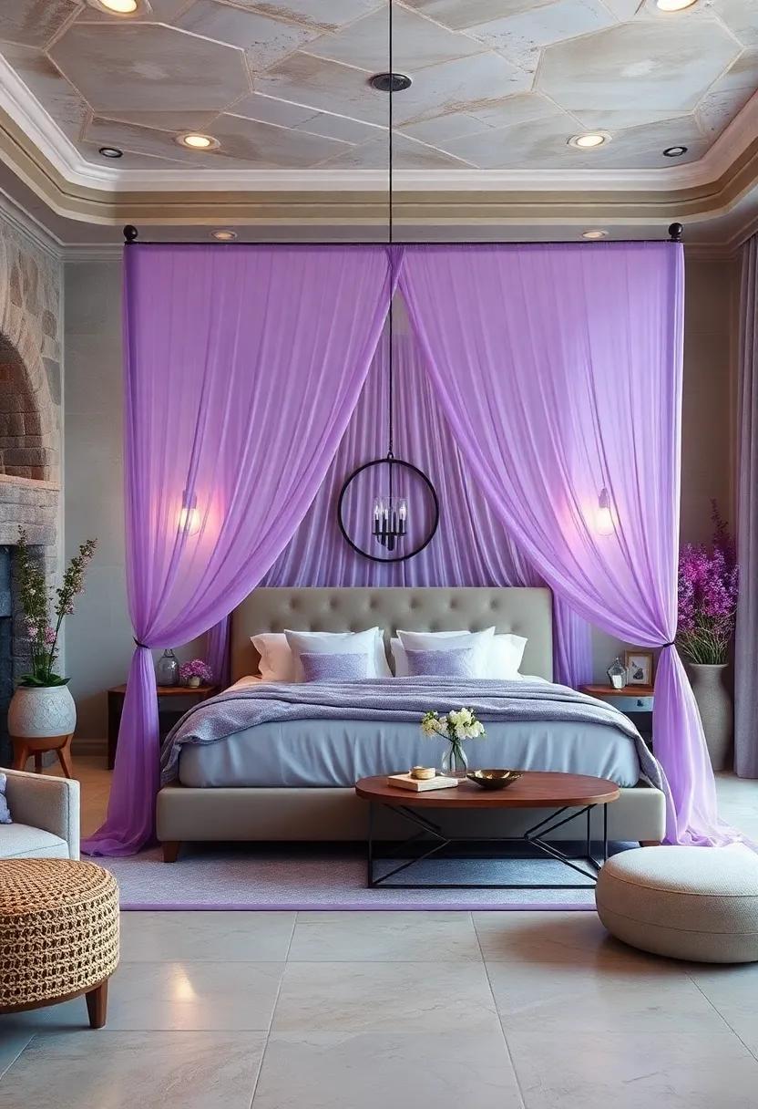 enhance the inviting ambiance further by incorporating accessories that play off the lavender tones. think about stylish cushion covers in complementary hues, soft lavender blankets at the foot of the bed, and even a delicate lavender-scented candle on your nightstand as finishing touches.by mixing and matching these elements, you’ll create a serene retreat that beckons relaxation while embracing the beauty and sophistication of layered textiles.