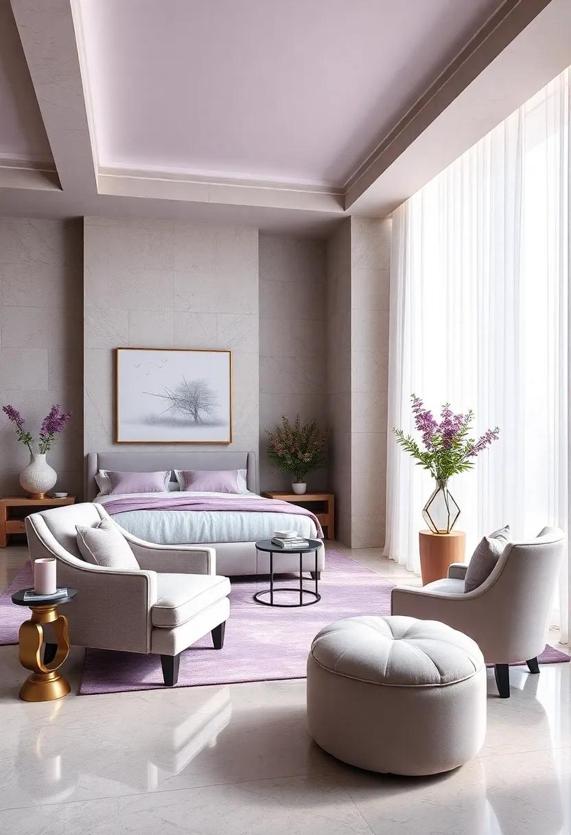 Lavender’s delicate charm truly shines when paired with neutral tones like beige and gray, creating a soothing atmosphere that invites relaxation. When designing your luxurious sanctuary,consider these elements: