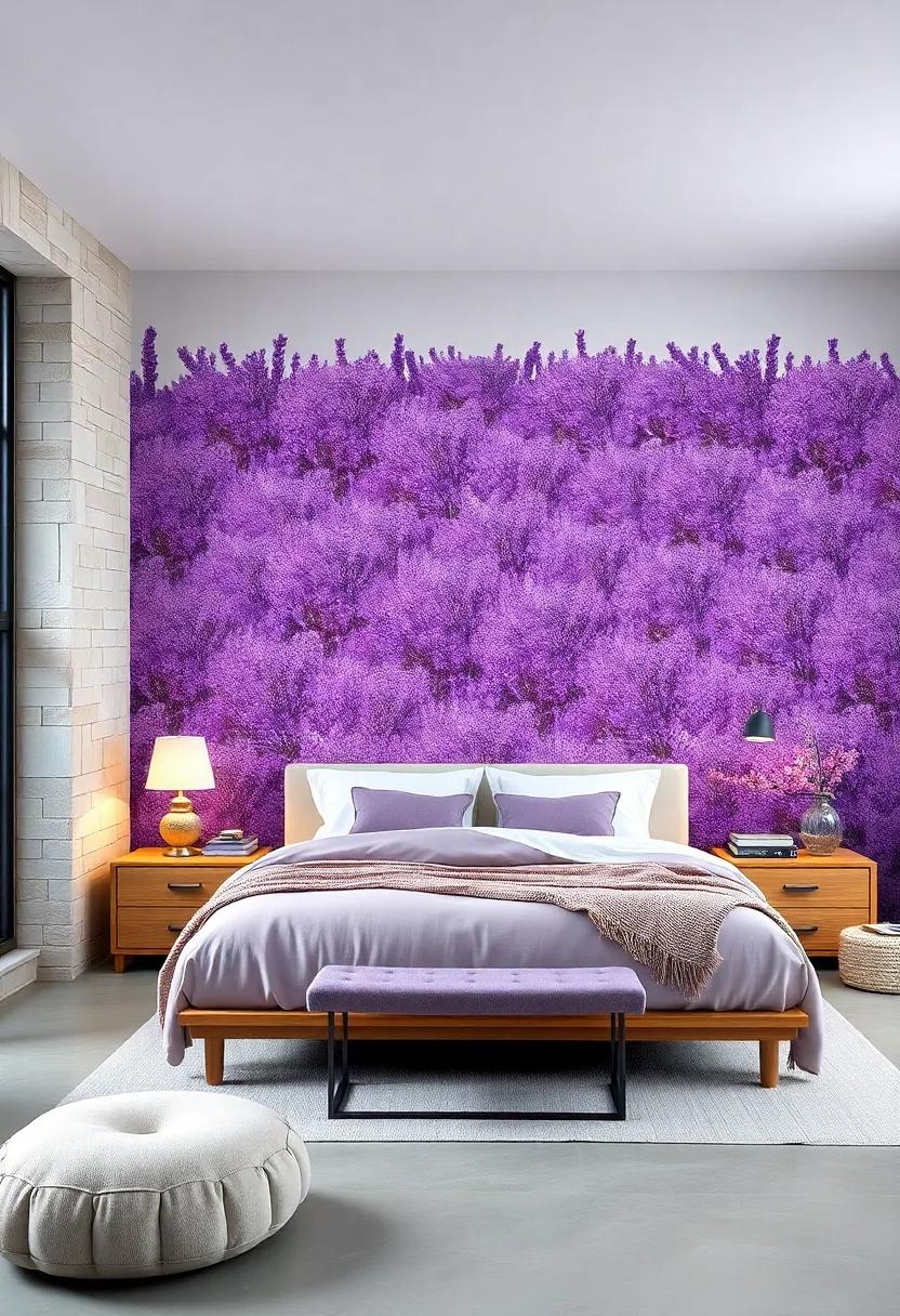 Lavender Wallpaper Mural: Create a statement wall with a stunning lavender-themed mural for a breathtaking and immersive escape