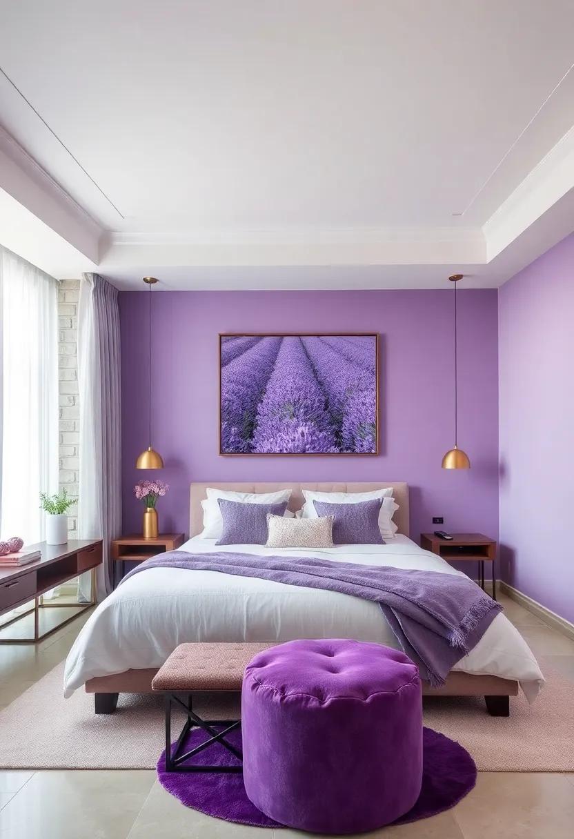 For those looking to elevate their design,play with textures and patterns that can bring dimension to your lavender oasis. Opt for silky throws, textured pillows, or even a lavender-patterned area rug that marries functionality with style. Create a calming focal point with a statement piece, like a beautifully crafted lavender-hued headboard or an oversized piece of artwork that captures the essence of this dreamy color. To inspire your transformation, consider the following elements: