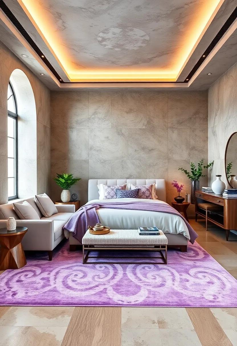 Incorporating subtle hints of lavender into your luxury bedroom can transform the space into a tranquil haven while maintaining an elegant vibe. Instead of overwhelming the room with bold, saturated hues, consider adding lavender lamp shades that cast a soft, soothing light, enhancing the ambiance during evening hours. Opt for textured throws or cozy blankets in this calming shade draped over a plush armchair or at the foot of the bed. this method provides warmth to the decor and invites relaxation without dominating the visual space.