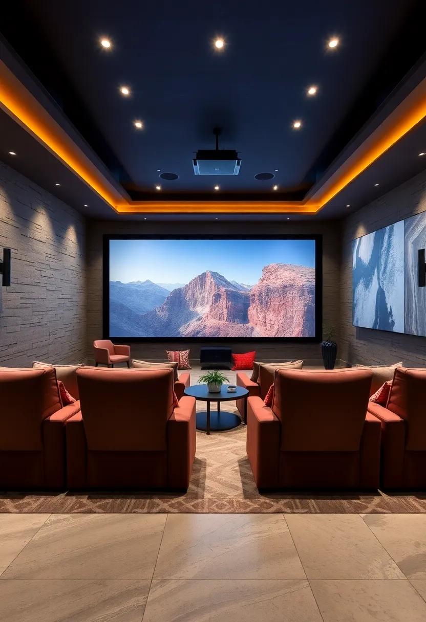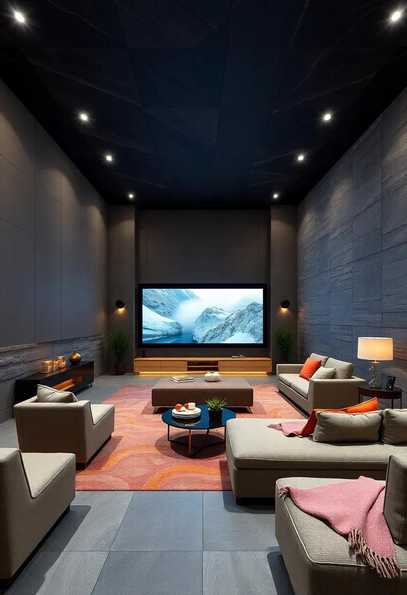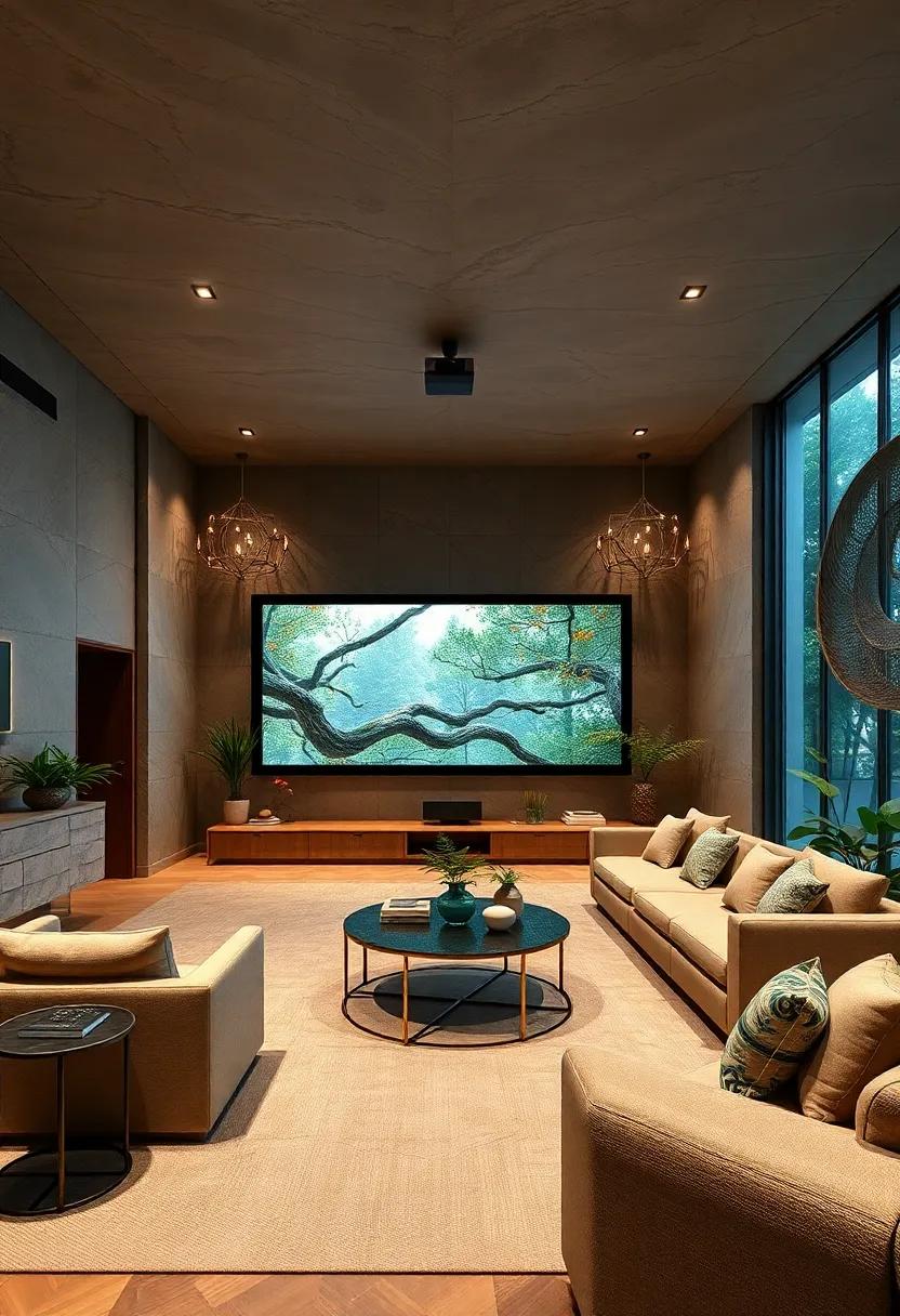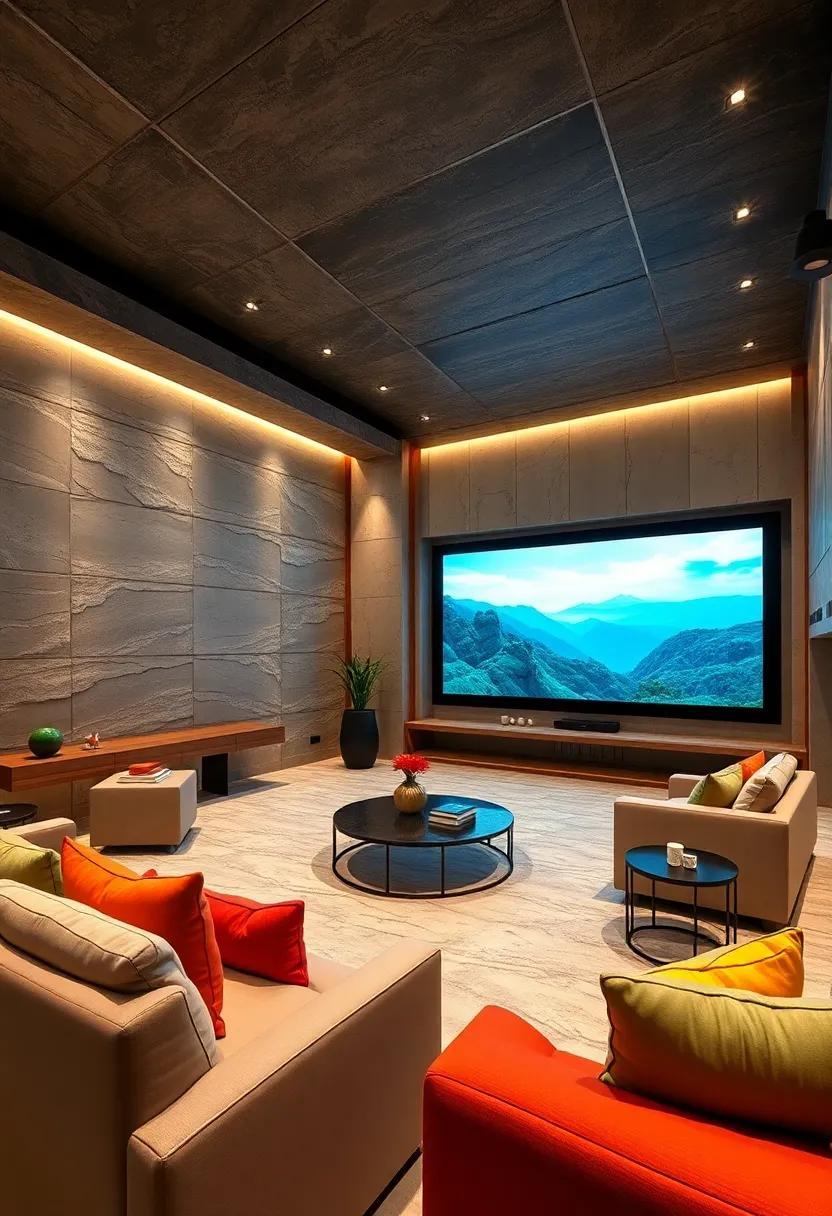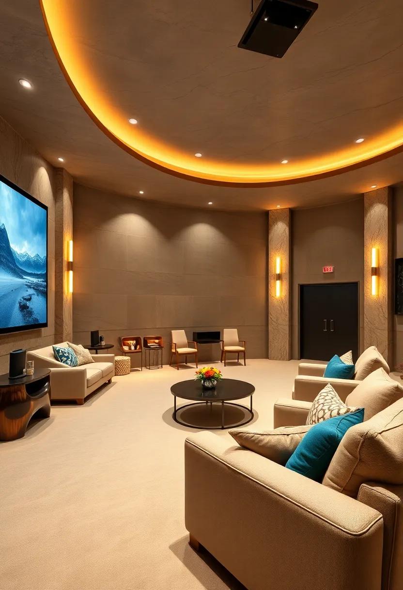 The Mosaic Lounge: Combining vibrant colors⁣ and textured finishes, this home theater​ is highlighted by an engaging 135-inch screen that invites creativity and⁢ artistic⁣ expression into⁢ movie nights