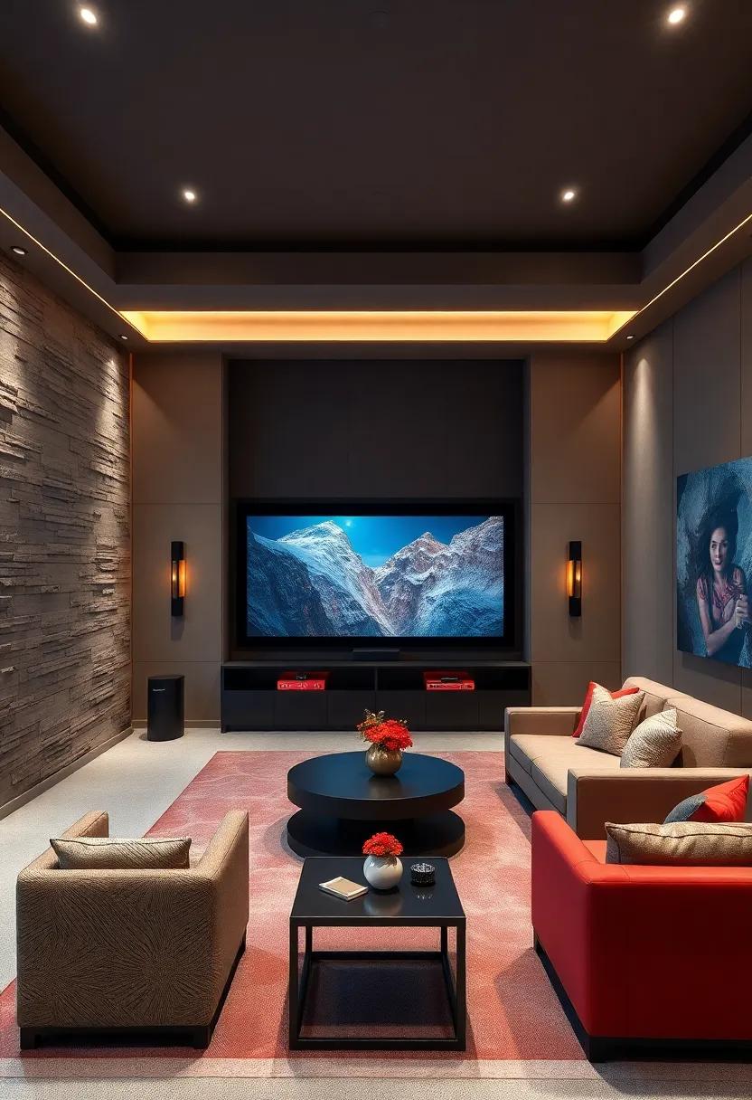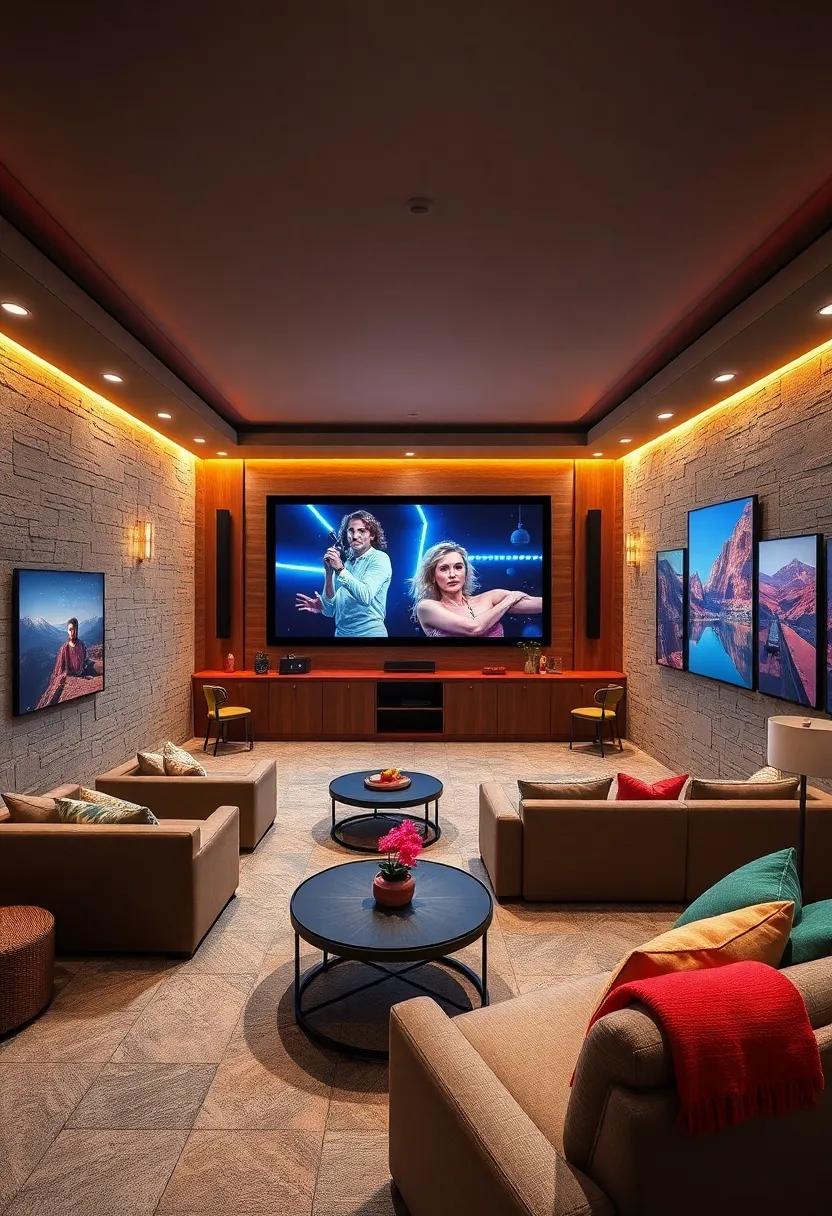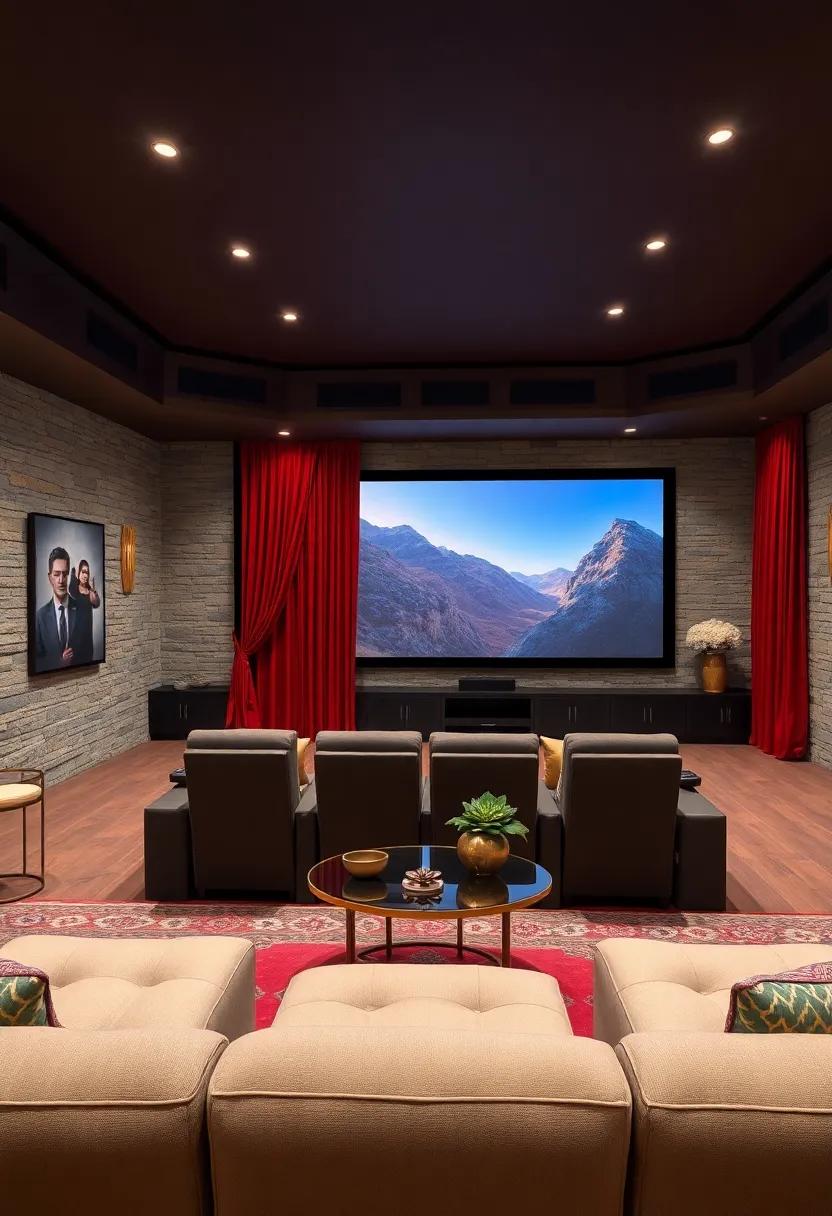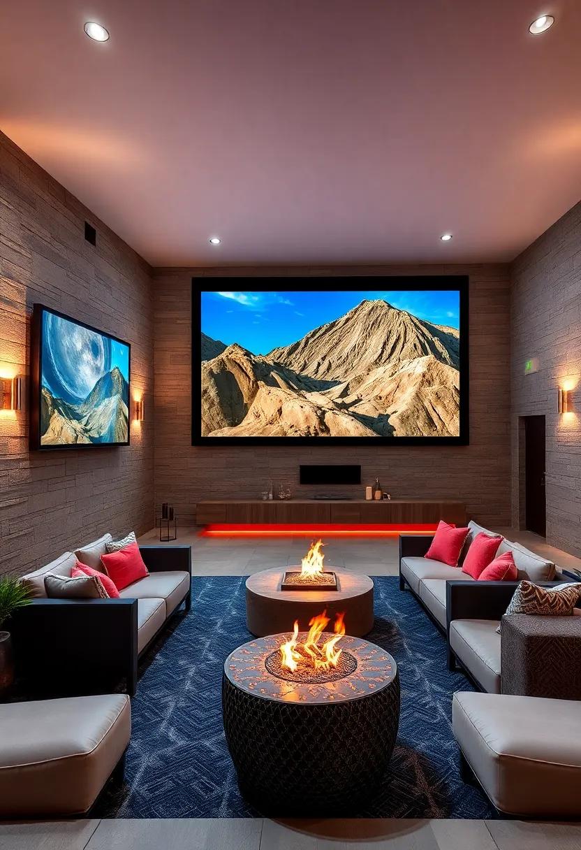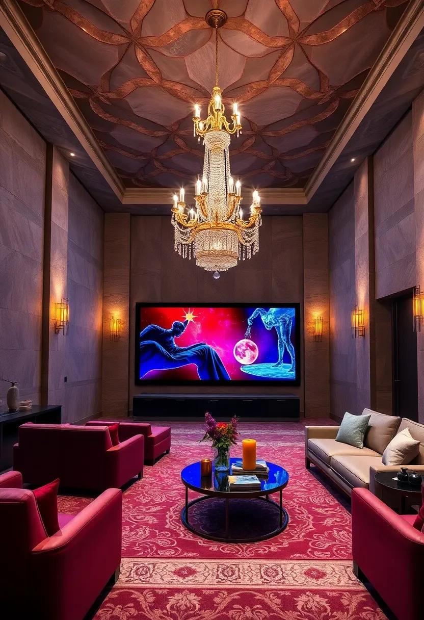 The Mosaic Lounge: Combining vibrant colors⁣ and textured finishes, this home theater​ is highlighted by an engaging 135-inch screen that invites creativity and⁢ artistic⁣ expression into⁢ movie nights
