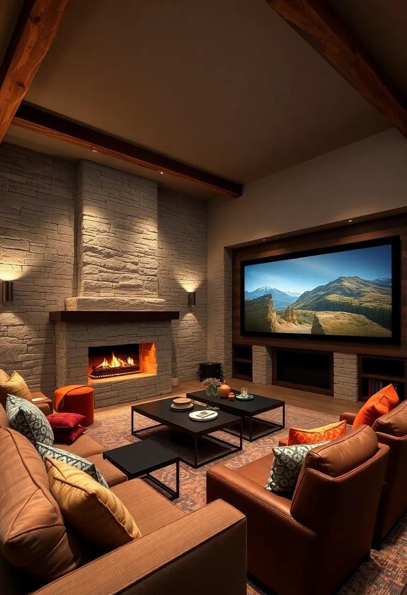The Rustic Escape: With wooden beams and a stone fireplace, this ⁢cozy⁢ theater boasts⁤ a large screen‌ perfect for family movie nights in a warm, inviting atmosphere