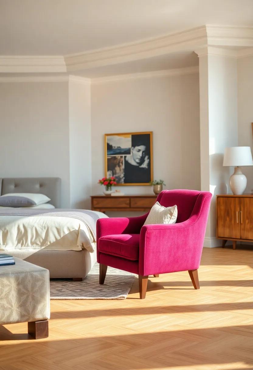 Imagine sinking into a plush velvet accent chair after a long day, where every contour embraces you in a soft, luxurious hug. This vintage-inspired piece is not only a functional seating option but a statement that marries timeless elegance with contemporary style. The rich textures and deep hues of velvet elevate your space while offering a cozy retreat, seamlessly enhancing the aesthetic appeal of your bedroom. Playful yet sophisticated, it beckons you to take a moment for yourself, turning your relaxation time into a lavish experience.