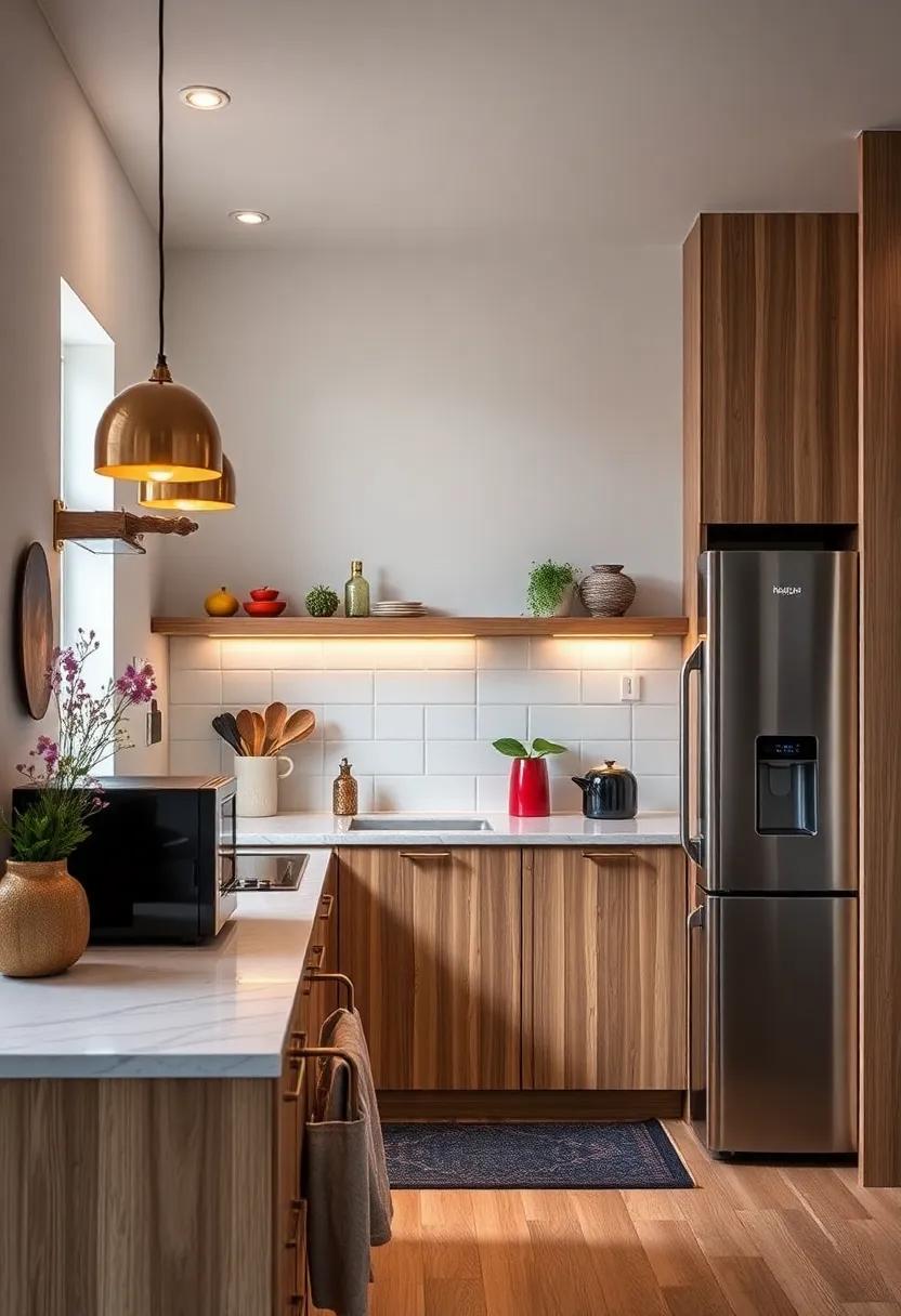 Consider creating a functional layout that focuses on vertical storage, allowing appliances to blend harmoniously with your cabinetry. Devices like wall-mounted microwaves or under-cabinet coffee machines can release valuable counter area while maintaining easy access to everything you need. Here are some options to consider:
