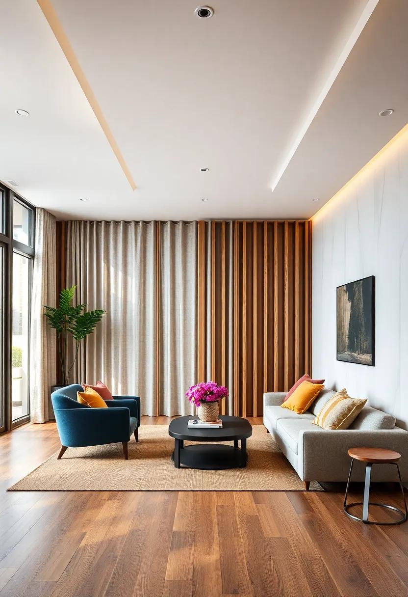 Additionally, transparent dividers made from glass or acrylic can visually separate areas while maintaining openness and allowing light to flow freely. Artistic touches such as hanging curtains can also serve as beautiful yet functional separators—especially sheer fabric that can evoke a sense of whimsy. create distinct atmospheric zones with the help of these versatile elements: