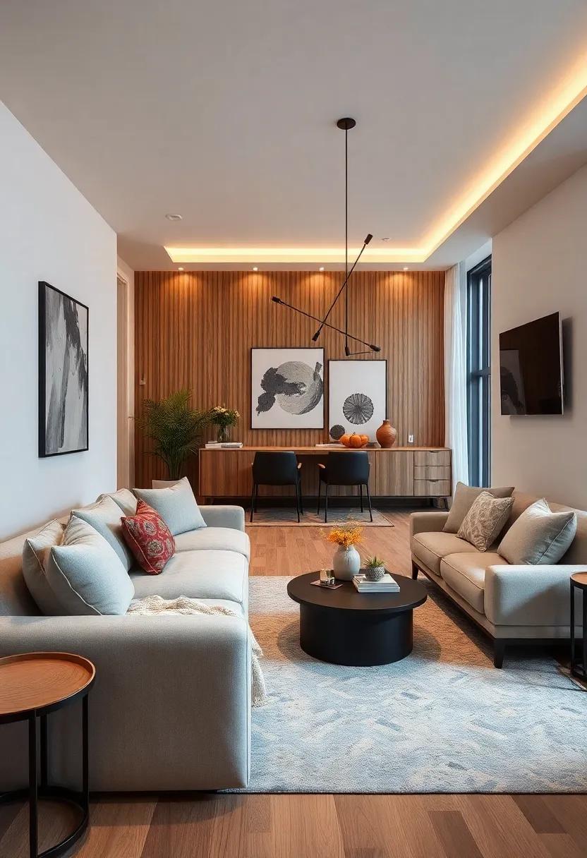 to further enhance flexibility, think about the potential of your living room to function as a home office or a creative nook. By incorporating furniture that can easily move or adapt, such as nesting tables or a modular sofa, these areas can morph to fit your needs. Use multi-functional furniture to your advantage, like ottomans with hidden storage or a coffee table that can rise to dining height. Here’s a simple table to illustrate effective conversions: