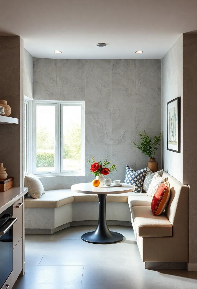 This type of seating arrangement not only maximizes available room but also contributes to a fun and inviting atmosphere. Choosing materials like hardwood or laminated surfaces for the booth can add durability while achieving a polished look. To further enhance functionality,consider installing under-seat storage where you can tuck away kitchen essentials or dining accessories. A booth not only elevates the visual appeal of your kitchen but also turns it into a social hub, making meals an enjoyable experience for family and friends.
