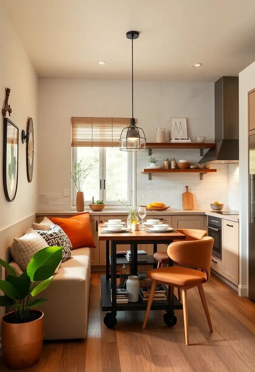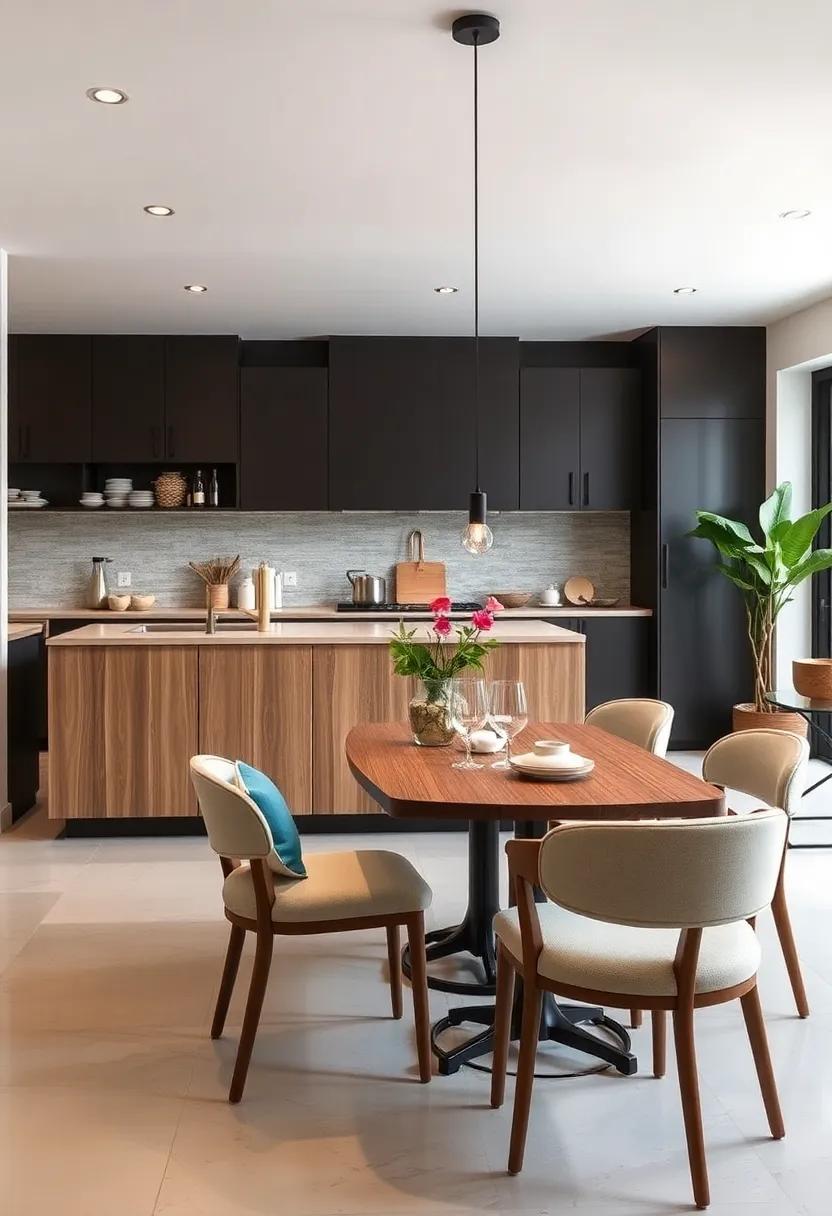 In small kitchens, a dual-purpose table can revolutionize how you use your space.Consider a table that seamlessly transforms from a workspace into a dining area, allowing for stress-free meal prep and enjoyable dining experiences. Folding tables are particularly useful as they can be tucked away when not in use. You can also explore drop-leaf tables, which can extend when you have guests or contract for a more cozy setting. Some innovative designs even feature built-in storage, enabling you to keep utensils or gadgets close at hand while maintaining a clutter-free surface.