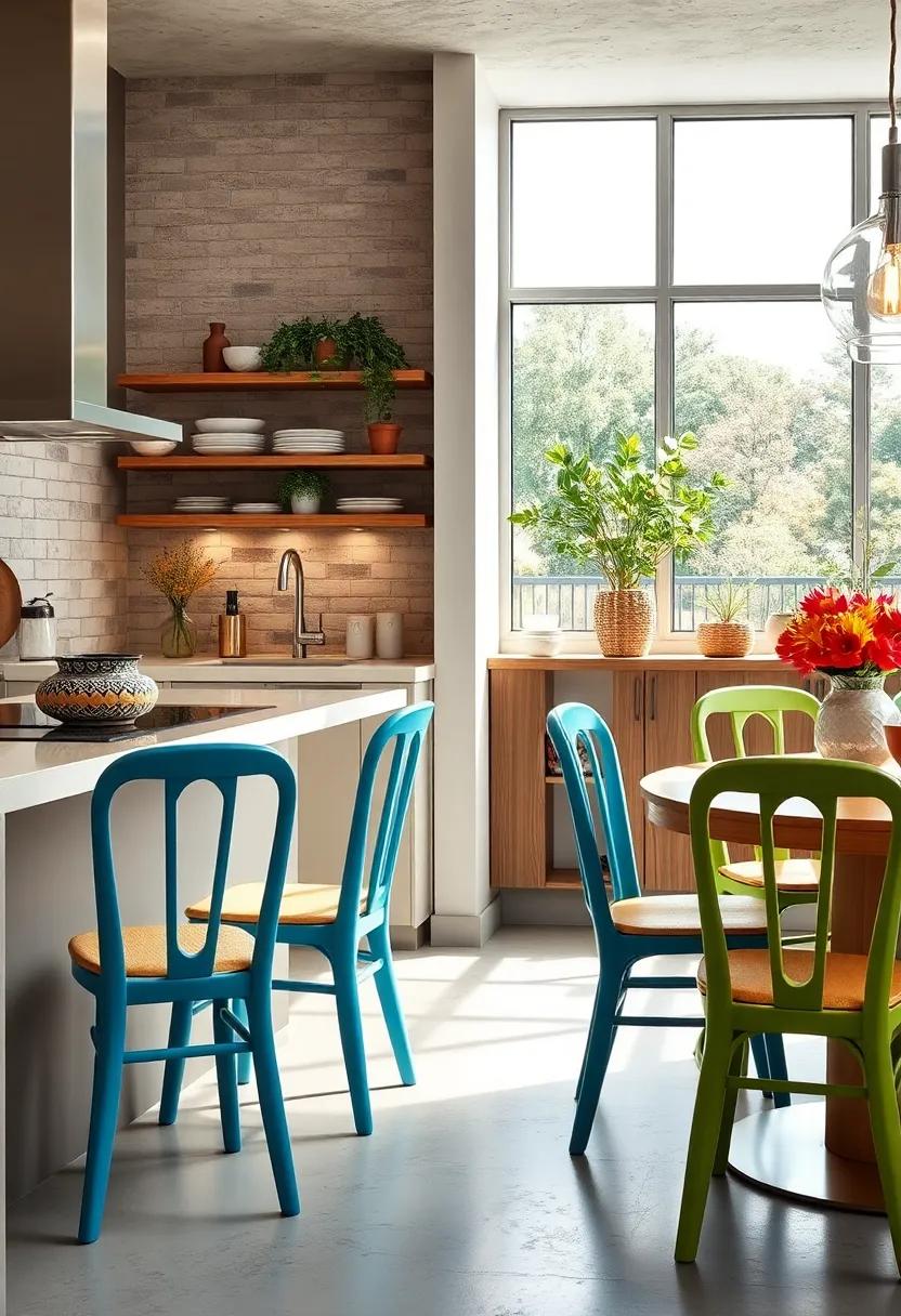 Transform mundane chairs into vibrant focal points with a splash of color! By painting your simple kitchen seating, you can introduce personality and charm without taking up extra space. Consider using bright hues like turquoise, sunny yellow, or vivid red to infuse energy into the room. If you’re feeling crafty, try creating a gradient effect or striped patterns that complement your existing decor. This simple DIY project not only enhances aesthetic appeal but also allows you to express your unique style, making your kitchen feel more inviting.