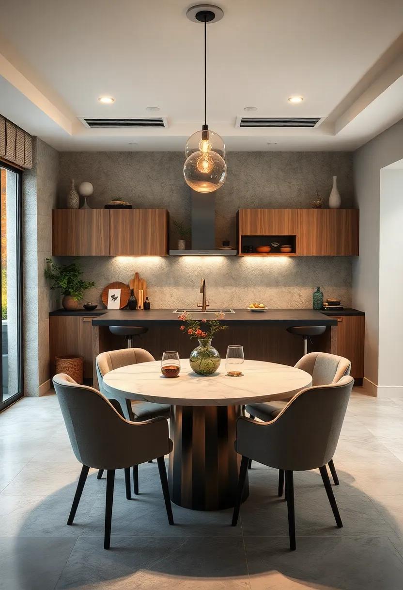 If you’re working with a compact kitchen, a round table can be your best friend. Thanks to their circular design, these tables not only create a cozy dining atmosphere but also naturally facilitate conversation by allowing everyone at the table to see and hear each other without the barriers typically found in rectangular setups. Look for drop-leaf or expandable options that can be adjusted based on your needs, offering flexibility without compromising on space. This way, you can enjoy intimate dinners or gatherings while keeping the layout sleek and open.