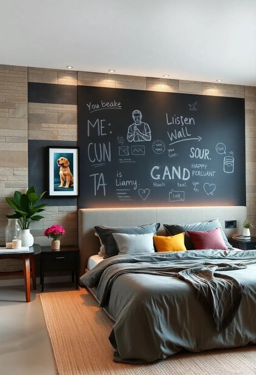 Imagine transforming a plain wall into a canvas of creativity with a chalkboard finish. This versatile design not only serves as a unique focal point in your bedroom but also invites endless opportunities for personal expression. With a chalkboard wall, you can easily jot down your thoughts, doodle your latest inspirations, or even leave sweet messages for loved ones, creating an atmosphere of warmth and playfulness. Plus,it’s a great way to incorporate seasonal themes—swap out drawings to reflect the holidays,or just doodle what you feel that day,allowing your space to evolve along with you.