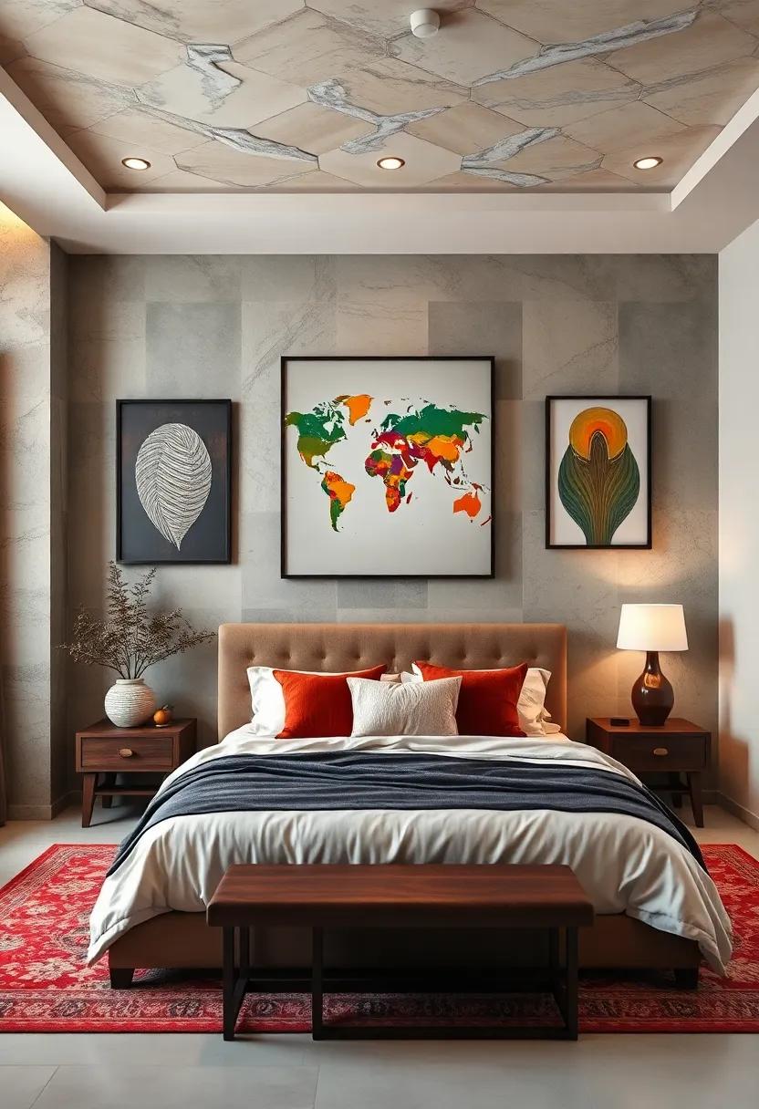 Transform your bedroom into a vibrant tapestry of global influences by showcasing art that reflects the rich diversity of cultures from around the world. Consider hanging traditional African masks or colorful textile art that brings warmth and storytelling to your walls. These pieces not only captivate the eye but also spark conversations that celebrate the traditions and histories of their origins. Explore the intricate patterns of Asian silk paintings or the bold graphics of Latin American murals — each artwork encapsulating the spirit of its culture, infusing your space with inspiration and a spirit of adventure.