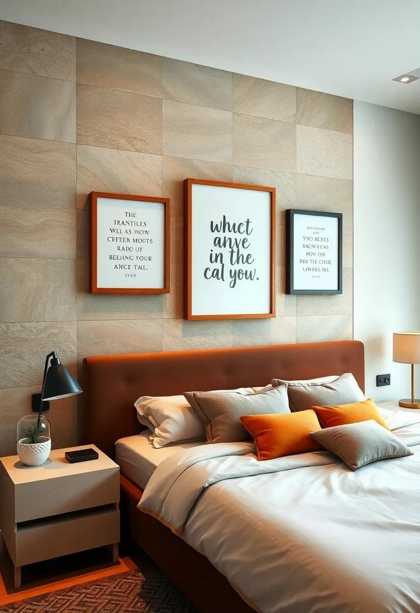Transform your accent wall into a source of motivation by incorporating framed quotes that resonate with your personal journey. Consider using typography in various sizes and styles to create a dynamic visual experience. Choose quotes that reflect your values, such as:
