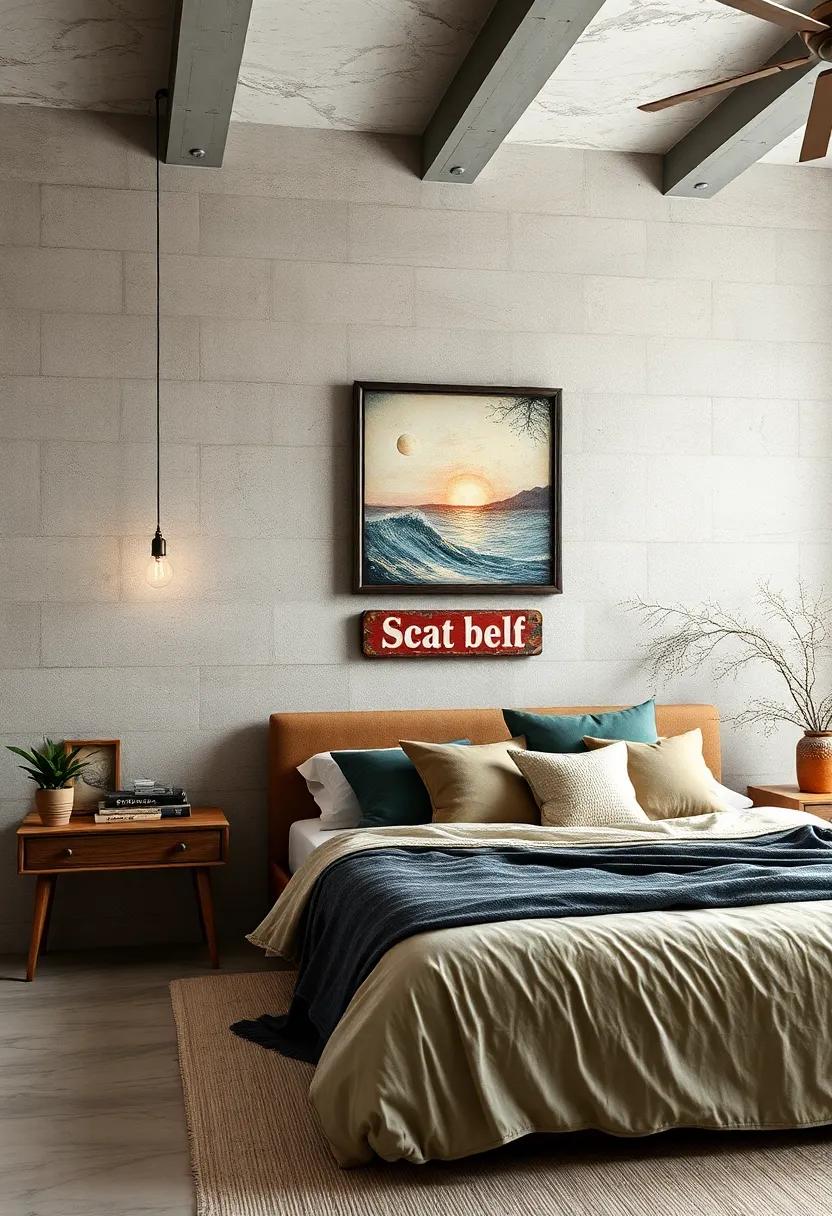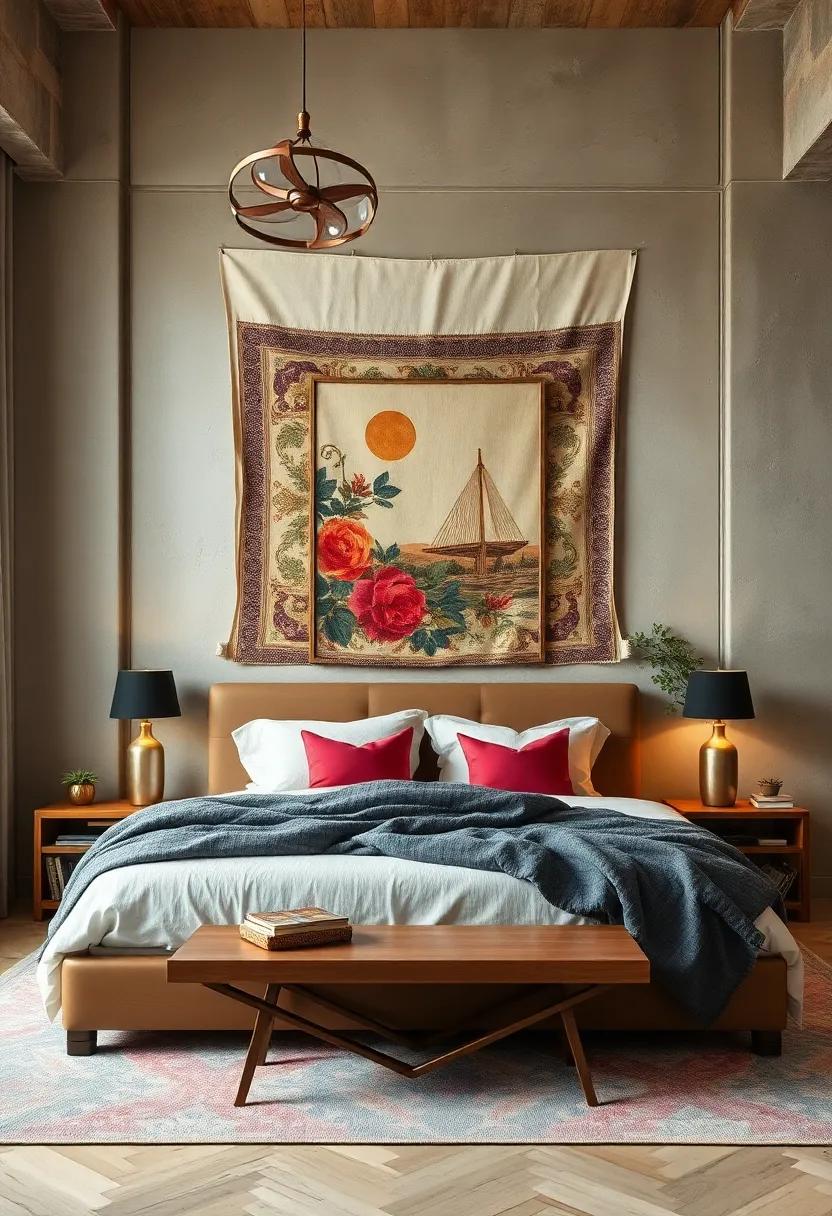 A thoughtful arrangement of repurposed items can create a focal point that draws the eye and expresses your individuality. Experiment with layering different materials—think combination of metallic textures, vibrant paints, and rustic woods. Use small shelves to display smaller repurposed items or even mount mirrors framed with reclaimed wood for a more expansive feel. If you’re feeling adventurous, create an accent wall using painted crates or wooden pallets, giving your bedroom an artistic yet functional vibe. Every repurposed piece can reflect your story, making your wall art as unique as you are.