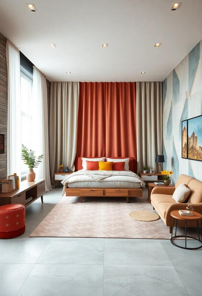 Transform your bedroom into a vibrant haven by embracing the beautiful chaos of pattern mixing. Layering different textures and prints can create an eclectic feel that reflects your artistic personality. Try pairing a floral duvet cover with a geometric throw blanket for a whimsical yet harmonious look. You can also enhance the ambiance by introducing a variety of abstract pillows and a striped area rug to break the monotony. Don’t be afraid to experiment; the key is to maintain a cohesive color palette that ties all the patterns together.
