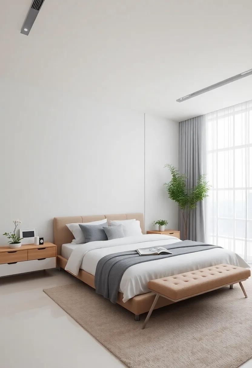 There’s something inherently calming about symmetry in design, making it a perfect approach for a modern bedroom. By incorporating symmetrical arrangements, you can create a sense of balance that not only enhances the aesthetic appeal but also promotes a serene atmosphere. Consider placing matching nightstands and lamps on either side of the bed to frame the focal point of the room, lending visual order. You might also play with patterns: think twin rugs or artwork that mirrors each other, adding layers of depth without disrupting the harmonious vibe.