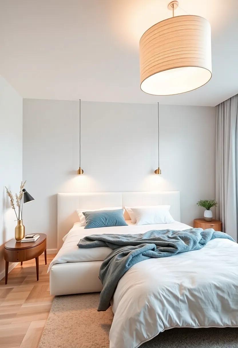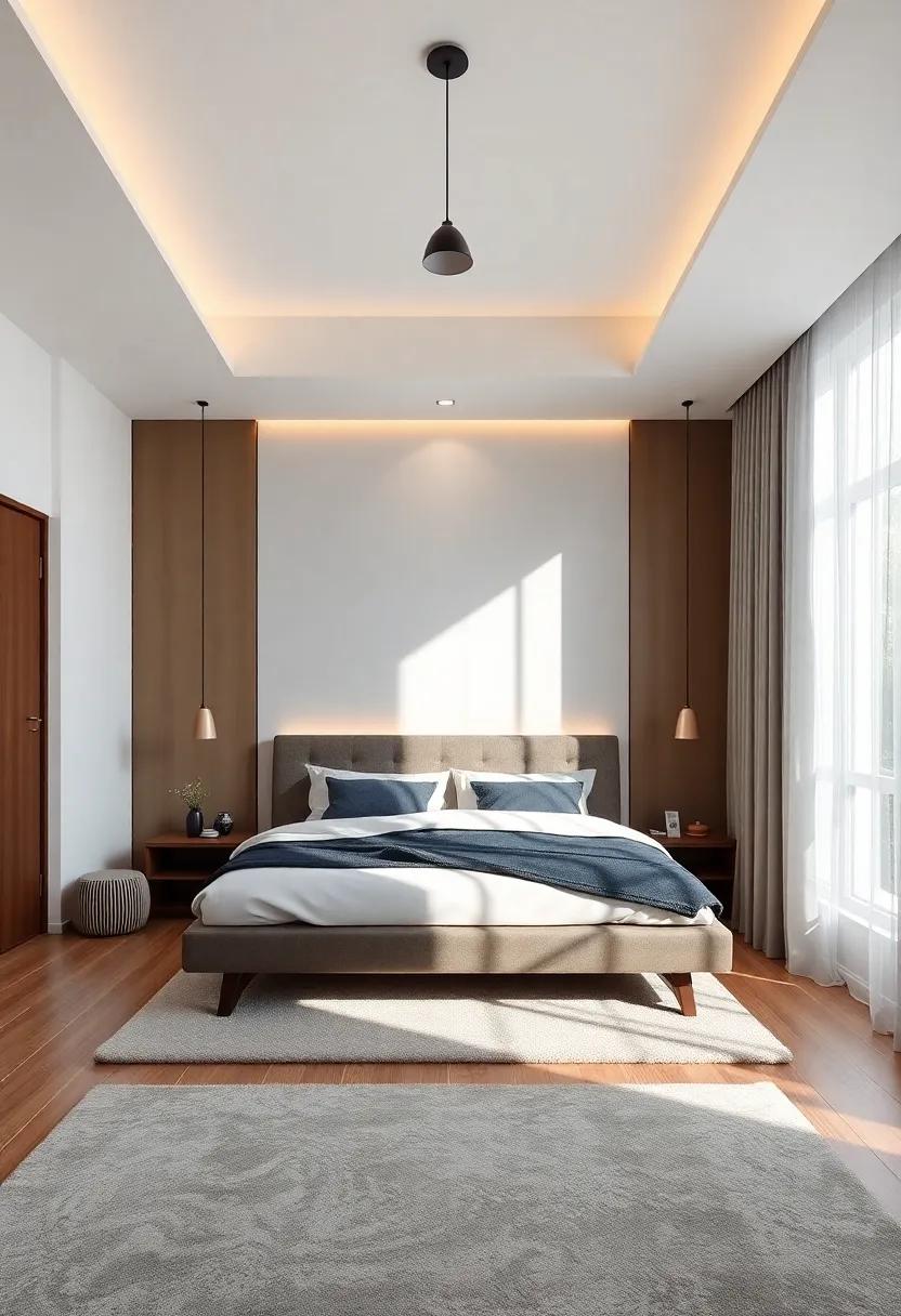 | Pendant Lights | Minimalist or Industrial | above bedside tables or in the center |
