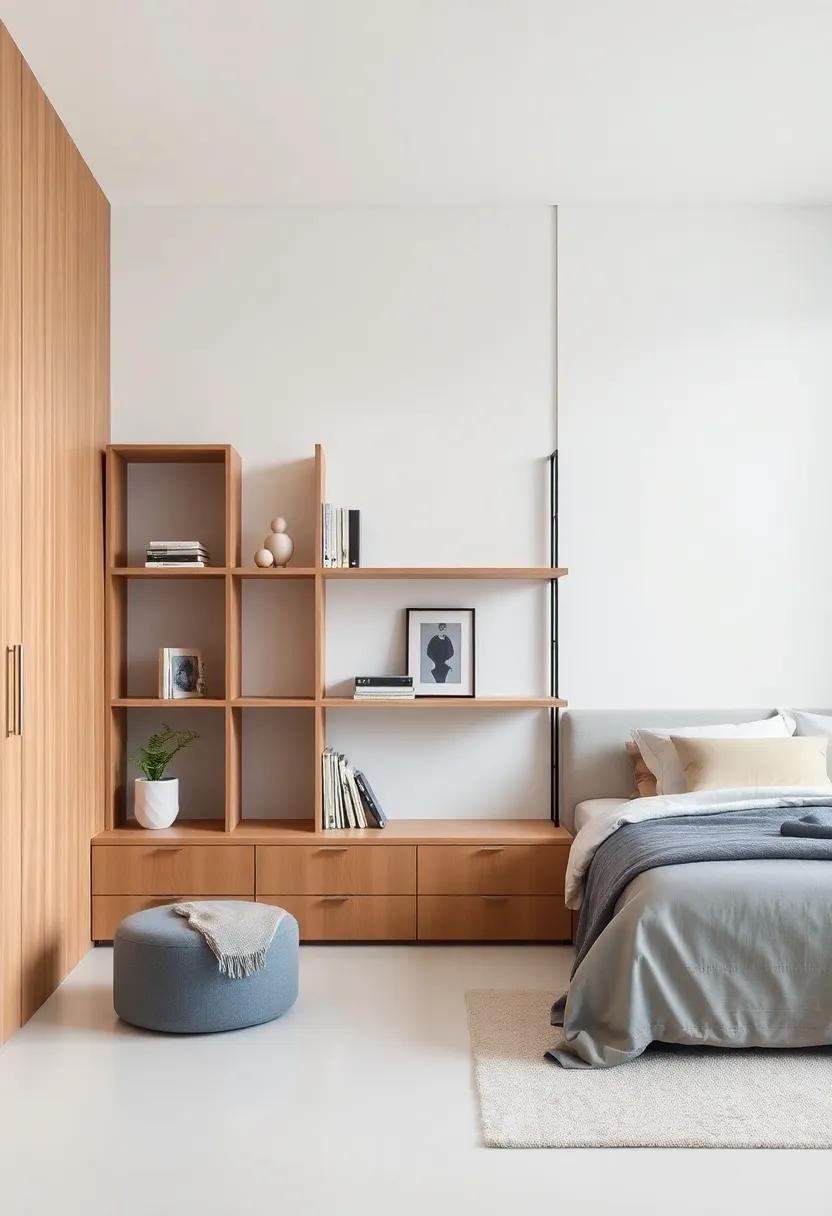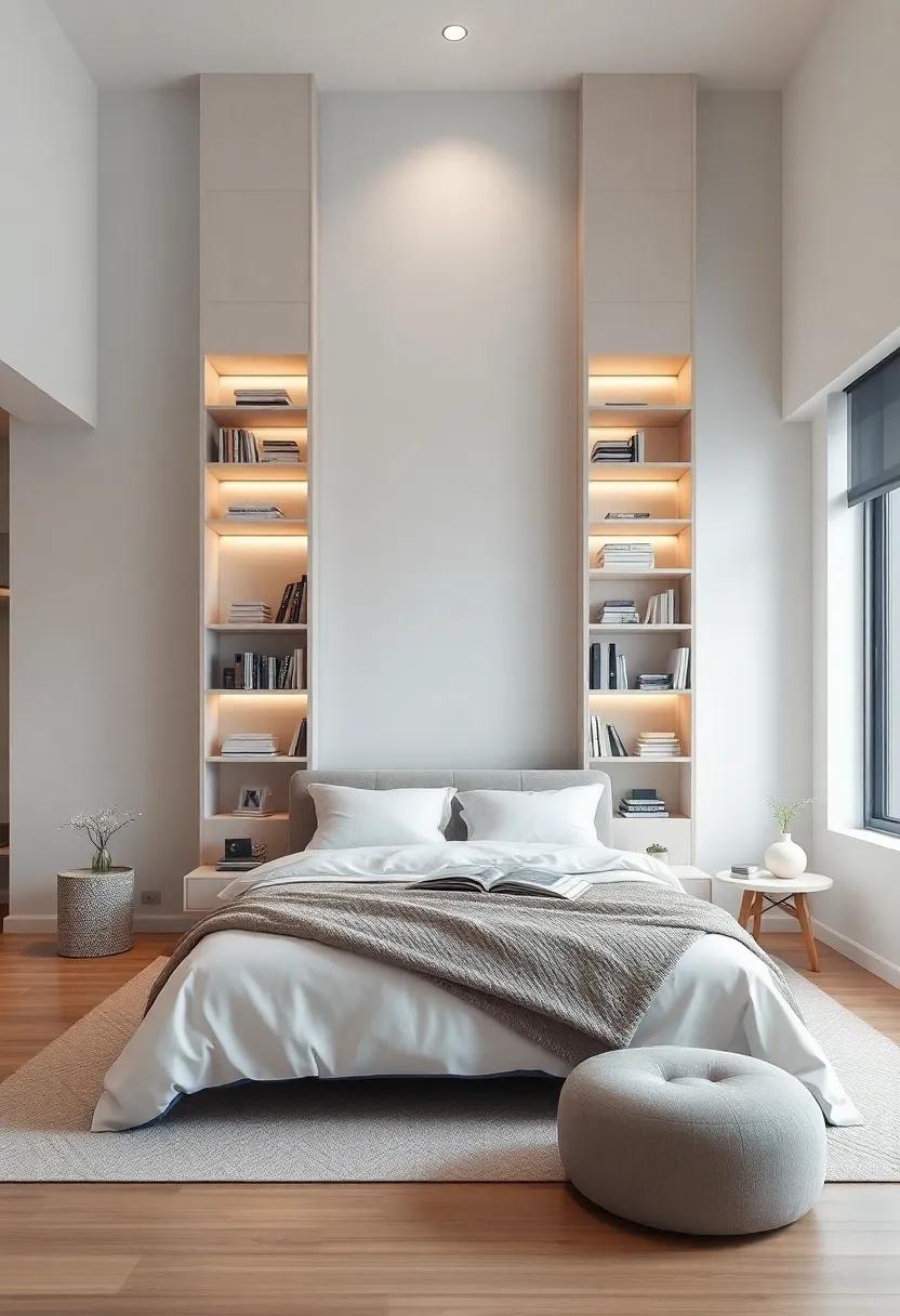 To maximize this storage solution, consider incorporating different levels of shelving from floor to ceiling or even a wall-mounted design that draws the eye upward, creating an illusion of more space. This technique not only enhances the visual appeal but also helps define your bedroom’s style, whether it’s minimalist, bohemian, or industrial. An elegant side table can complement your shelving, and exploring lighting options such as warm fairy lights or sleek sconces will further elevate the ambiance, providing both illumination and charm.